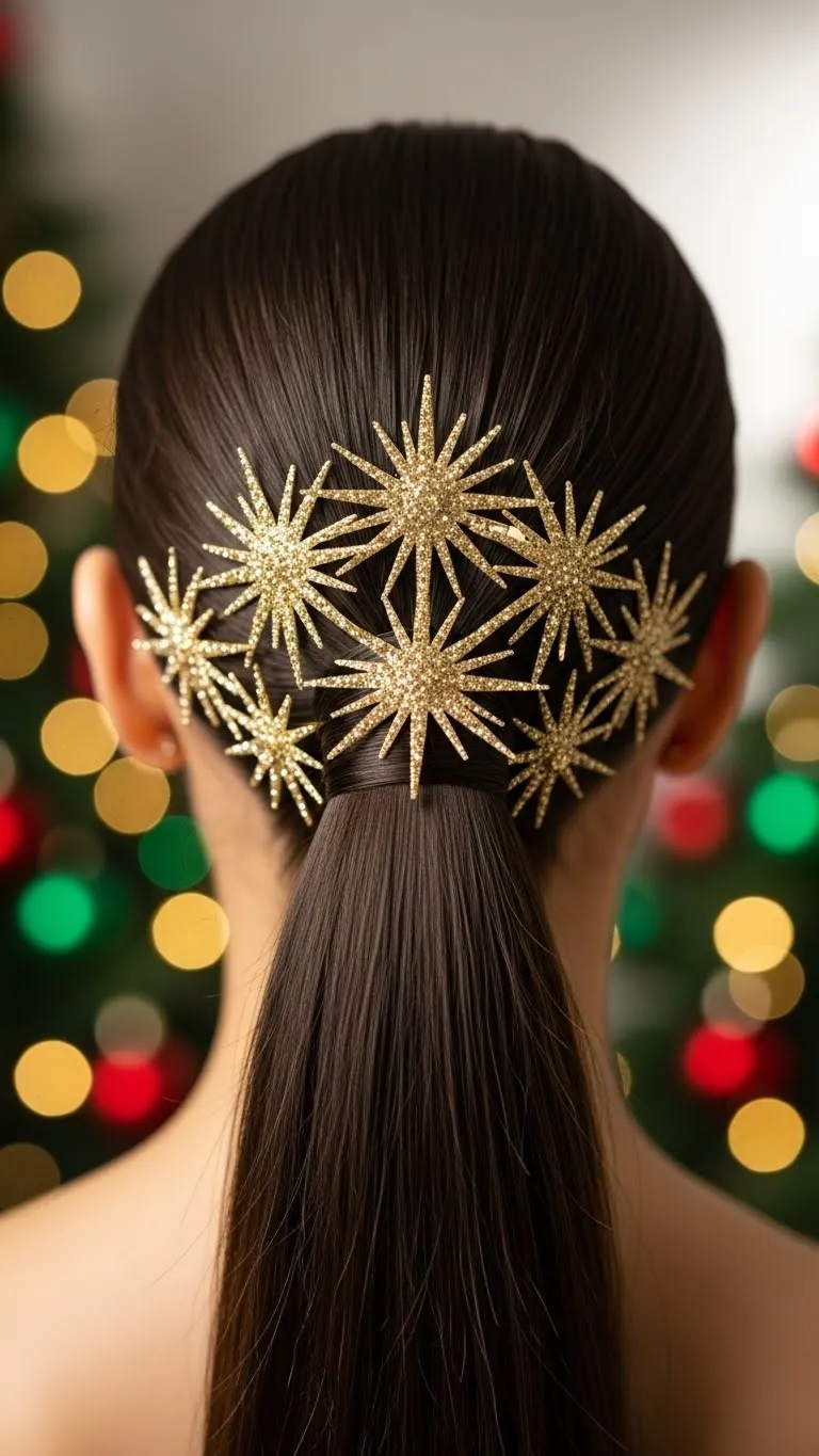 A simple ponytail becomes special by adding star clips in a circular pattern around the base. Use three to six small stars depending on hair thickness. Kids love the sparkle and the quick styling time. You can find star clips in multipacks for a low price. Avoid heavy ones so they stay put. This style fits casual and dressy events. Add a touch of curl to the ponytail for extra softness.