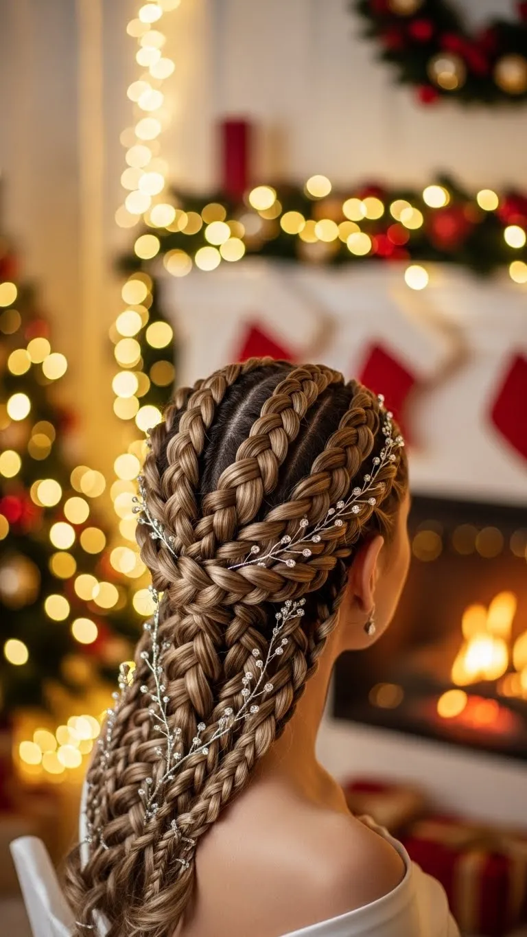 A rope braid uses two strands, making it perfect for beginners. Twist two sections away from your face, then twist them together. Secure at the back. Leave the rest of your hair down. You can curl the ends or keep them straight. Add simple clips or pearl pins for holiday charm. This style works great on shorter hair too. Spray a light mist of hairspray to keep the twists tidy. Rope braids look sleek and hold well even with minimal products.