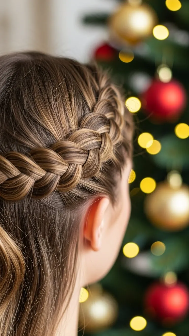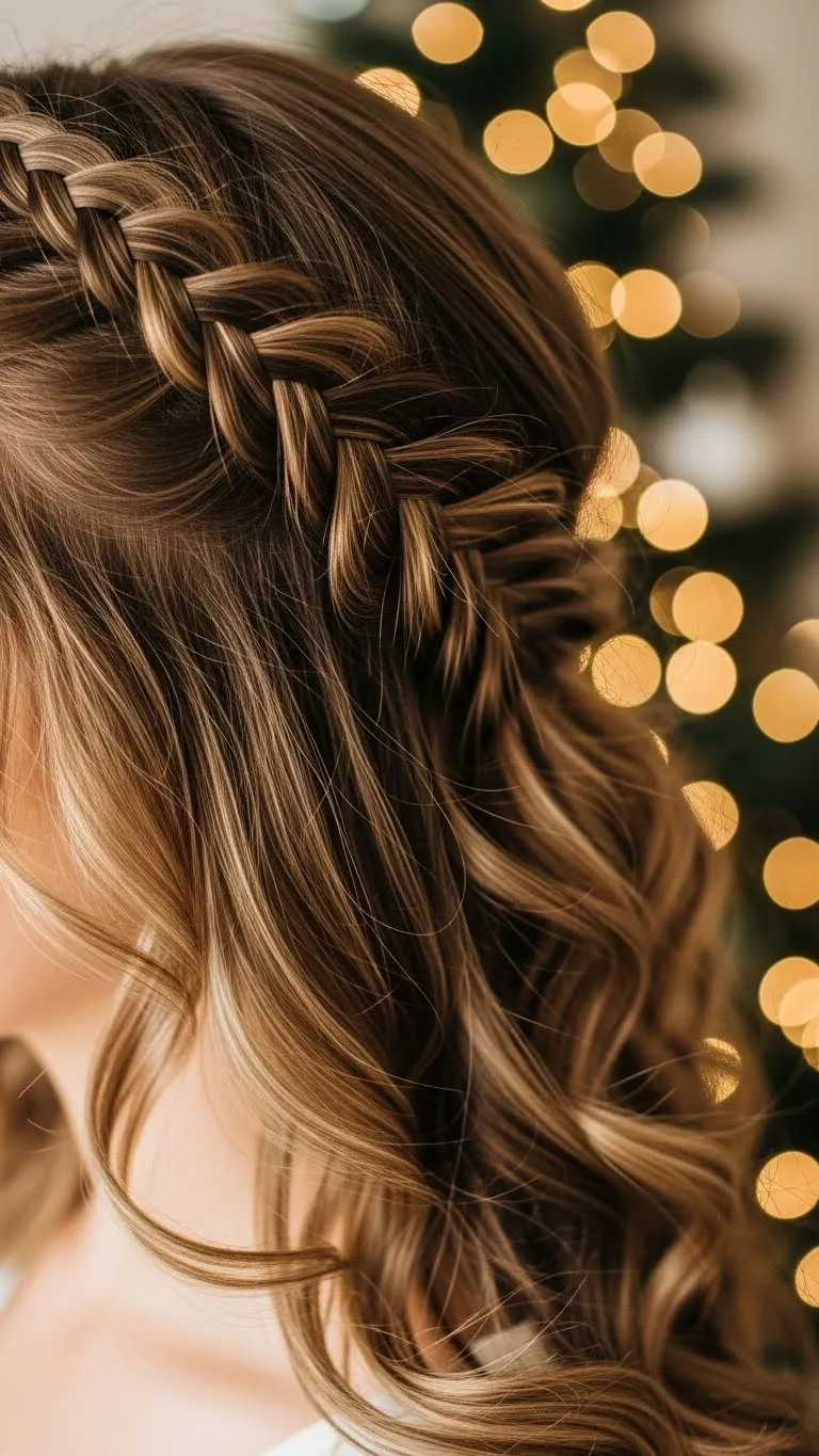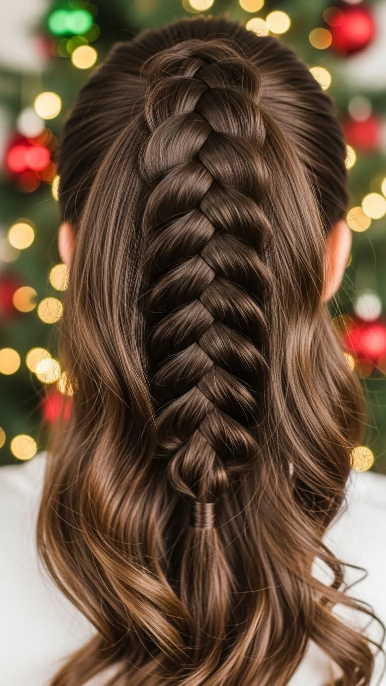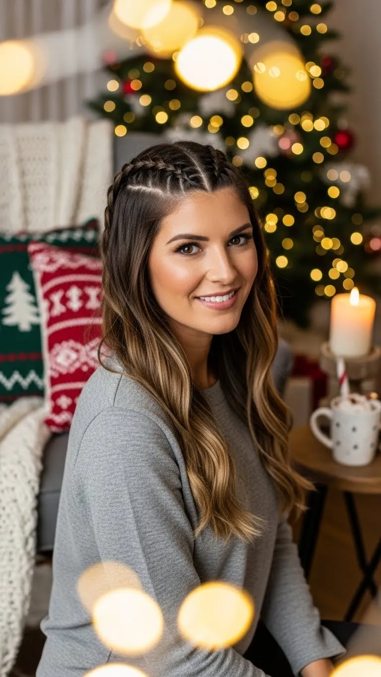 A rope braid uses two strands, making it perfect for beginners. Twist two sections away from your face, then twist them together. Secure at the back. Leave the rest of your hair down. You can curl the ends or keep them straight. Add simple clips or pearl pins for holiday charm. This style works great on shorter hair too. Spray a light mist of hairspray to keep the twists tidy. Rope braids look sleek and hold well even with minimal products.