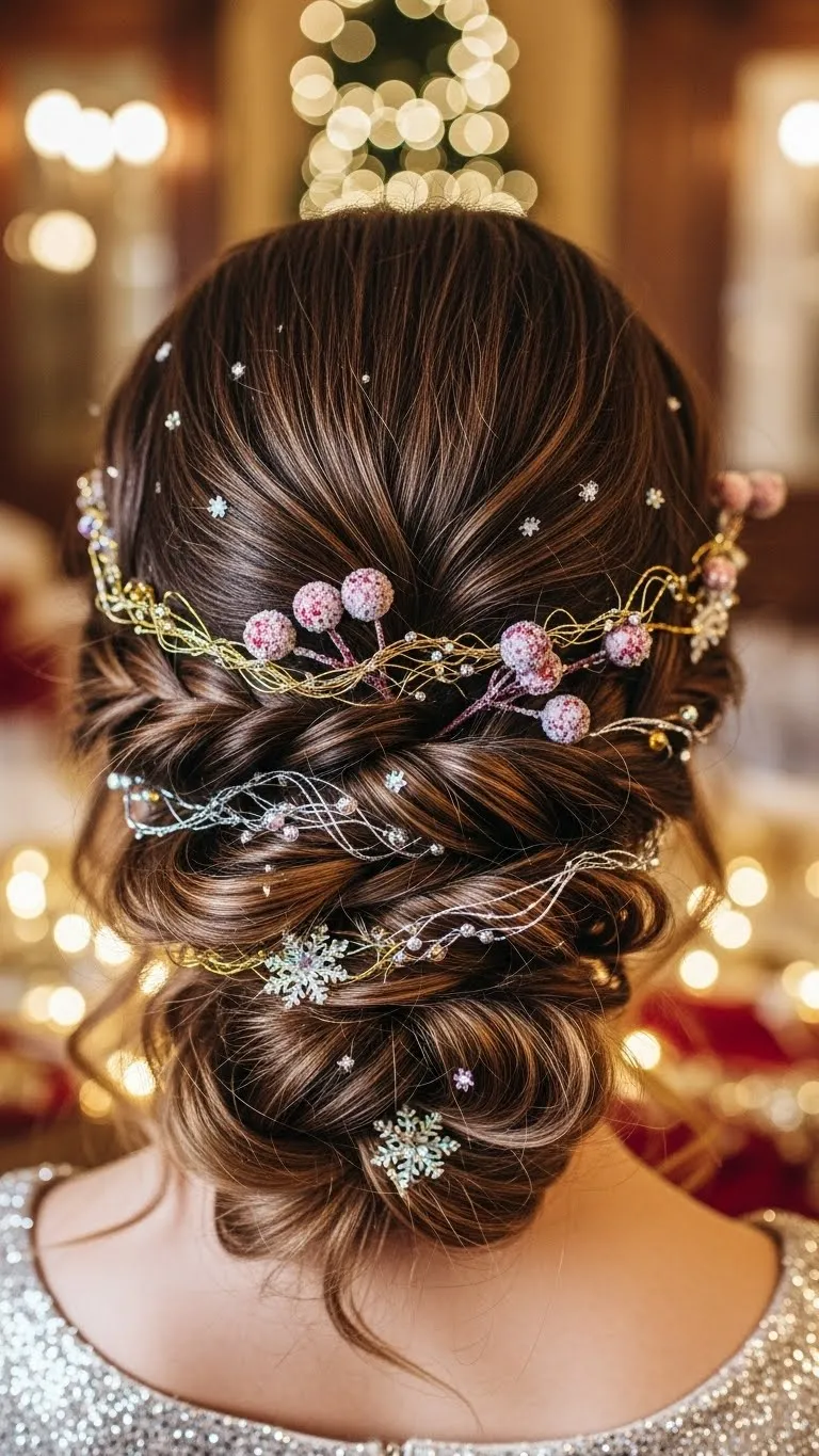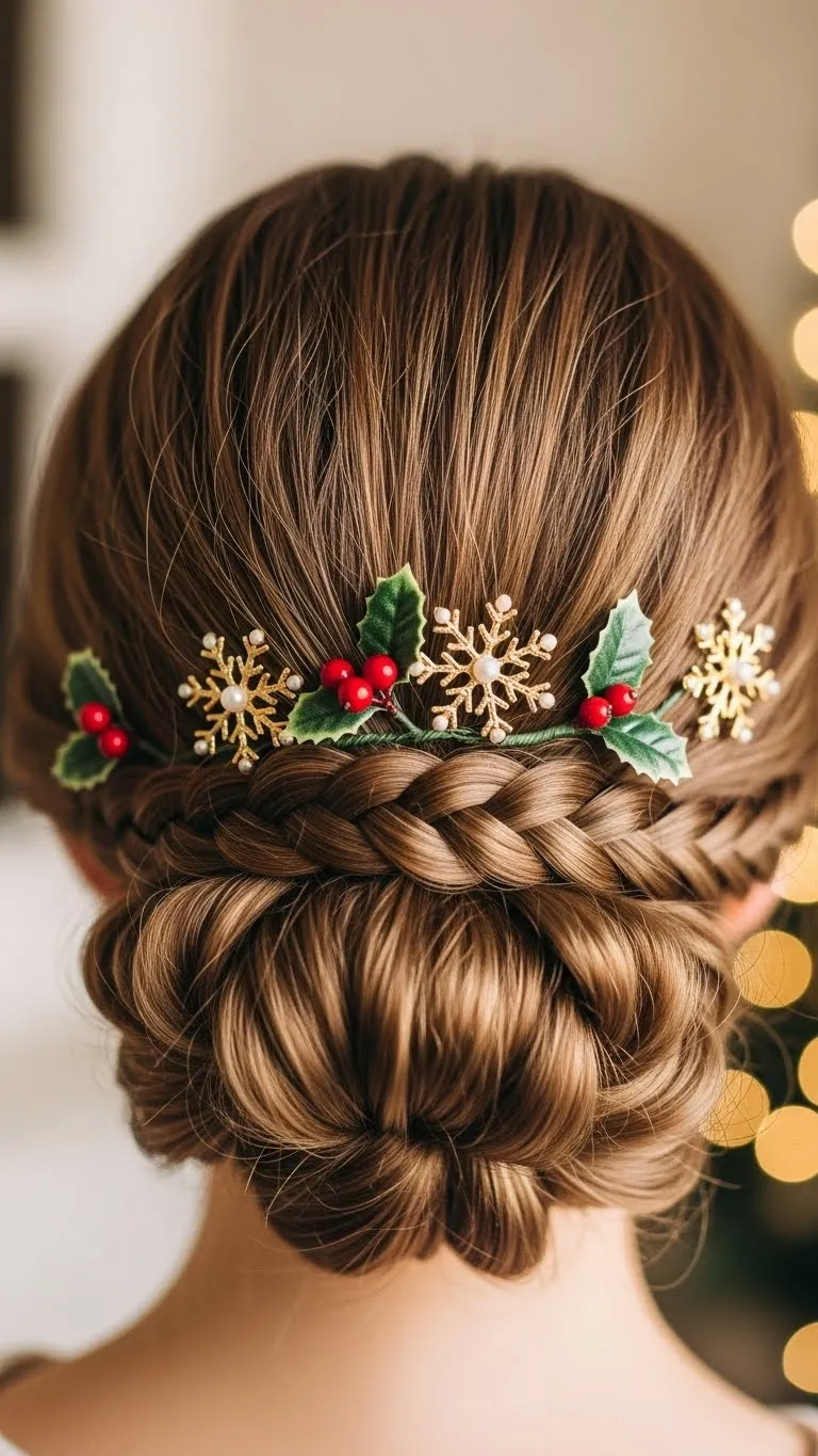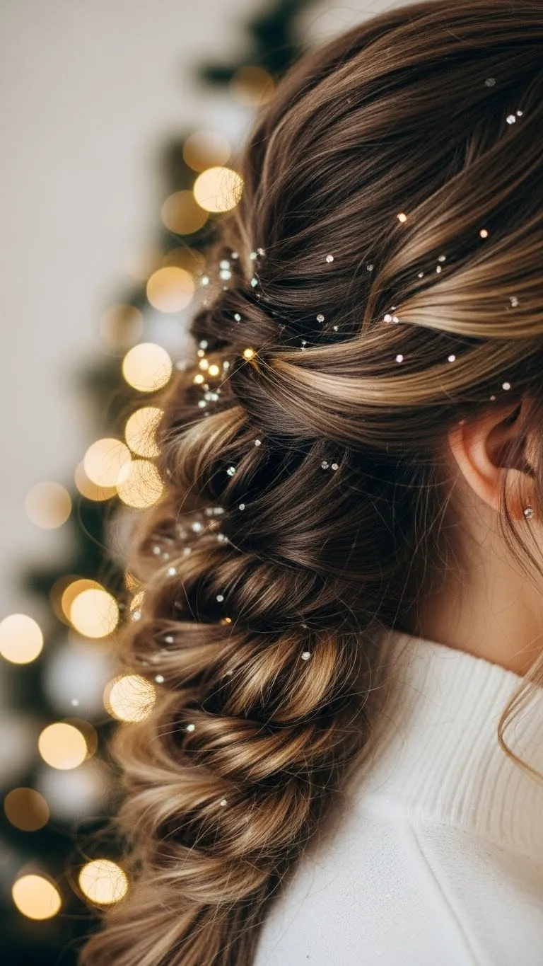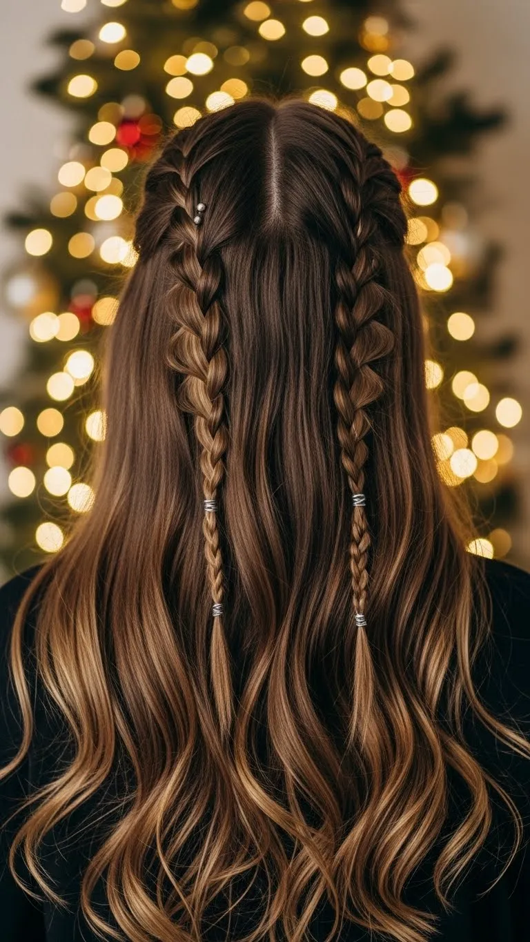 A rope braid uses two strands, making it perfect for beginners. Twist two sections away from your face, then twist them together. Secure at the back. Leave the rest of your hair down. You can curl the ends or keep them straight. Add simple clips or pearl pins for holiday charm. This style works great on shorter hair too. Spray a light mist of hairspray to keep the twists tidy. Rope braids look sleek and hold well even with minimal products.
