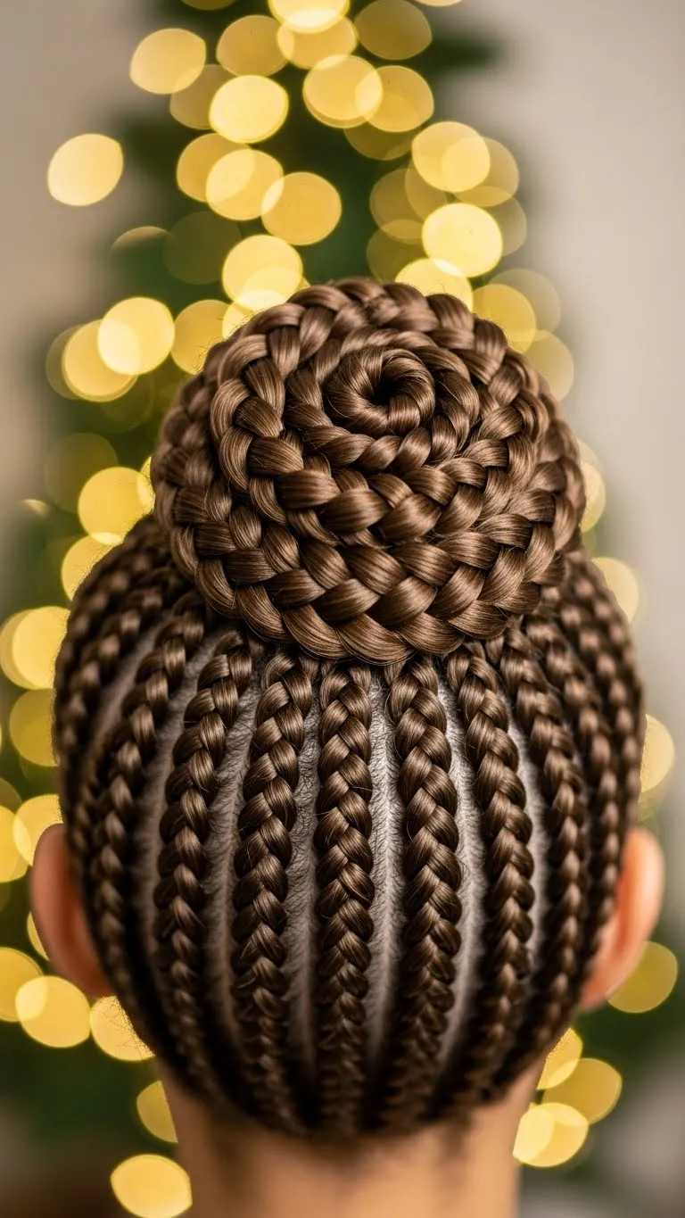 The braided top knot sits high and looks stylish with little effort. Start with a ponytail on top. Braid the entire ponytail and twist it into a bun. Secure with bobby pins. Leave a few soft pieces near the ears for a relaxed feel. Add a sparkly headband if you want something festive. Affordable options work just fine. This style keeps your hair out of the way and highlights your face. Works well for medium and long hair.