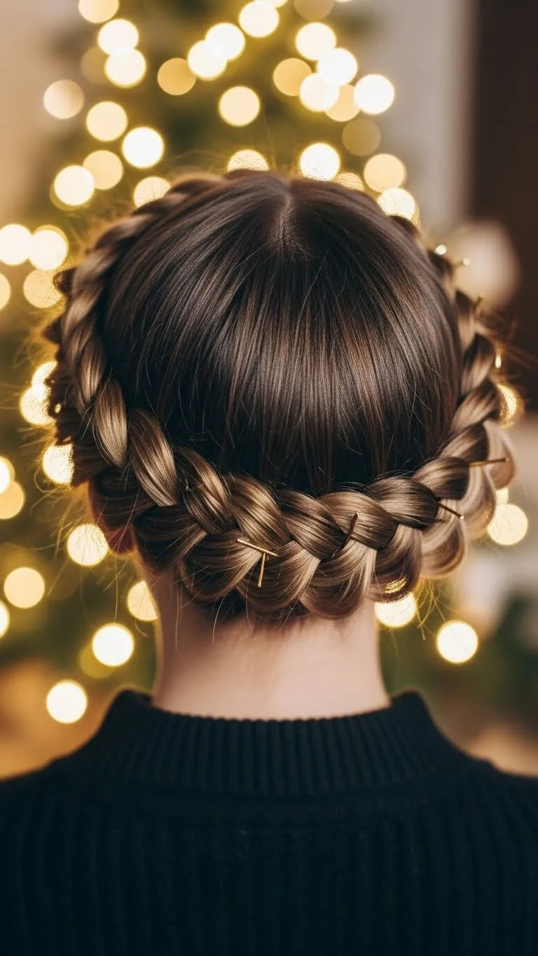 A Dutch crown braid wraps around your head for a statement style. Braid around the perimeter and pin the ends. Pull the braid slightly to make it look thicker. This style looks dramatic but doesn’t require expensive tools. If your hair is short, use small extensions—they’re often affordable and easy to clip in. Add small gold pins for holiday flair. This braid stays secure and feels comfortable for long hours.