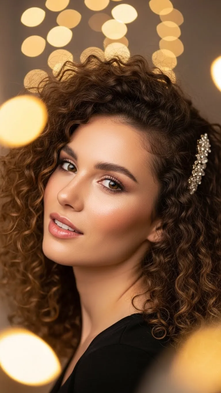 Let your curls shine fully. Part your hair slightly off-center and add a decorative clip on the lighter side. Fluff your curls with oil or cream for definition. This is easy, quick, and perfect for anyone wanting a bold yet simple dinner look. Budget accessories work just as well as fancy ones.