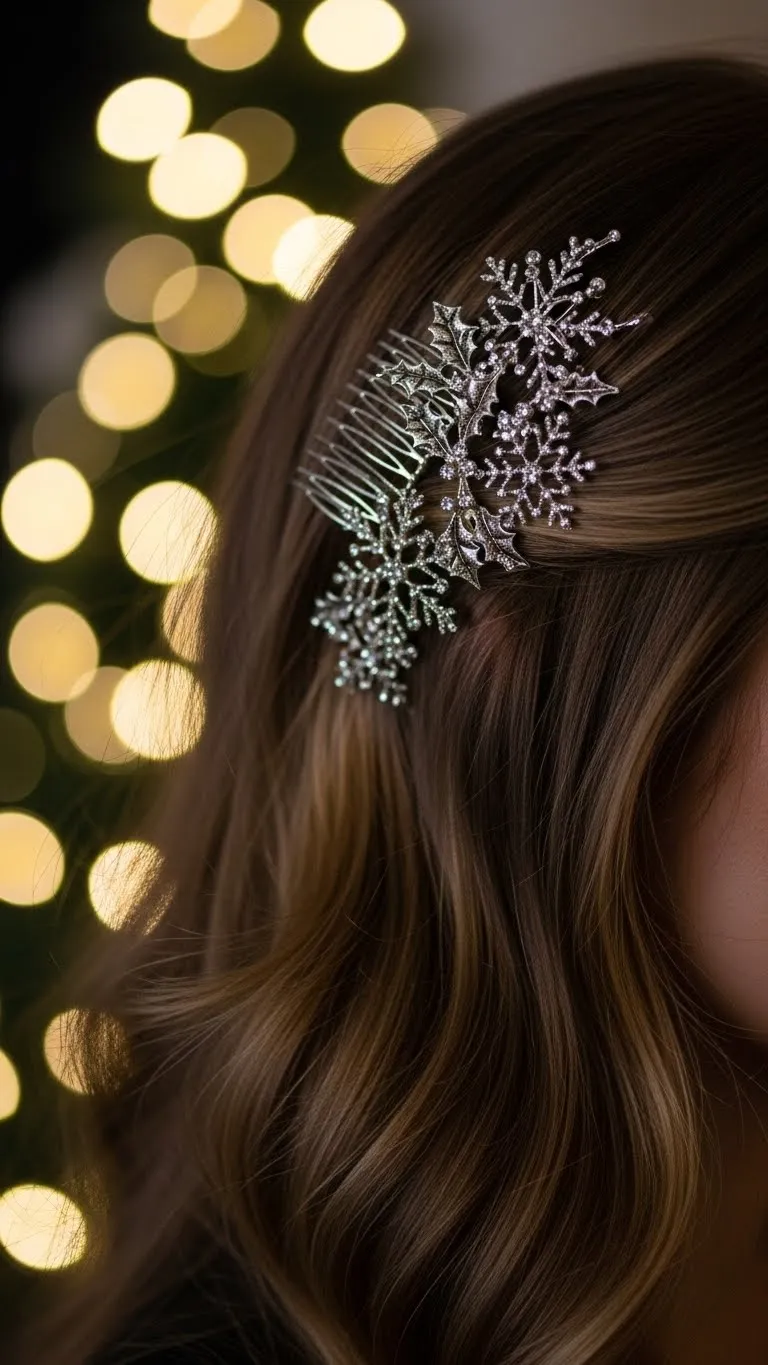 A decorative side comb adds charm without much effort. Create waves using braids or a curling method. Slide the comb into one side to hold the hair gently. These combs are cheap and come in holiday patterns. If your hair is thick, use a stronger comb. Keep the waves soft and natural. This style works well for both long and medium-length hair. It stays comfortable and adds a touch of elegance.