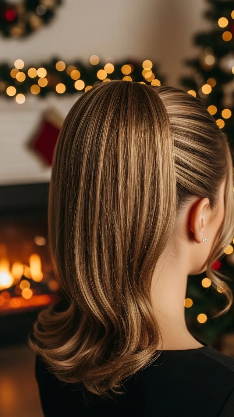A sleek low ponytail brings clean lines and comfort. Brush the hair smooth and secure it near the nape. Wrap a small accessory or piece of ribbon around the elastic. Keep it simple so the hair stays lightweight. This style works for straight and wavy hair. If your hair frizzes, smooth it with a bit of water. The look stays tidy during dinner, gift-giving, or photos.
