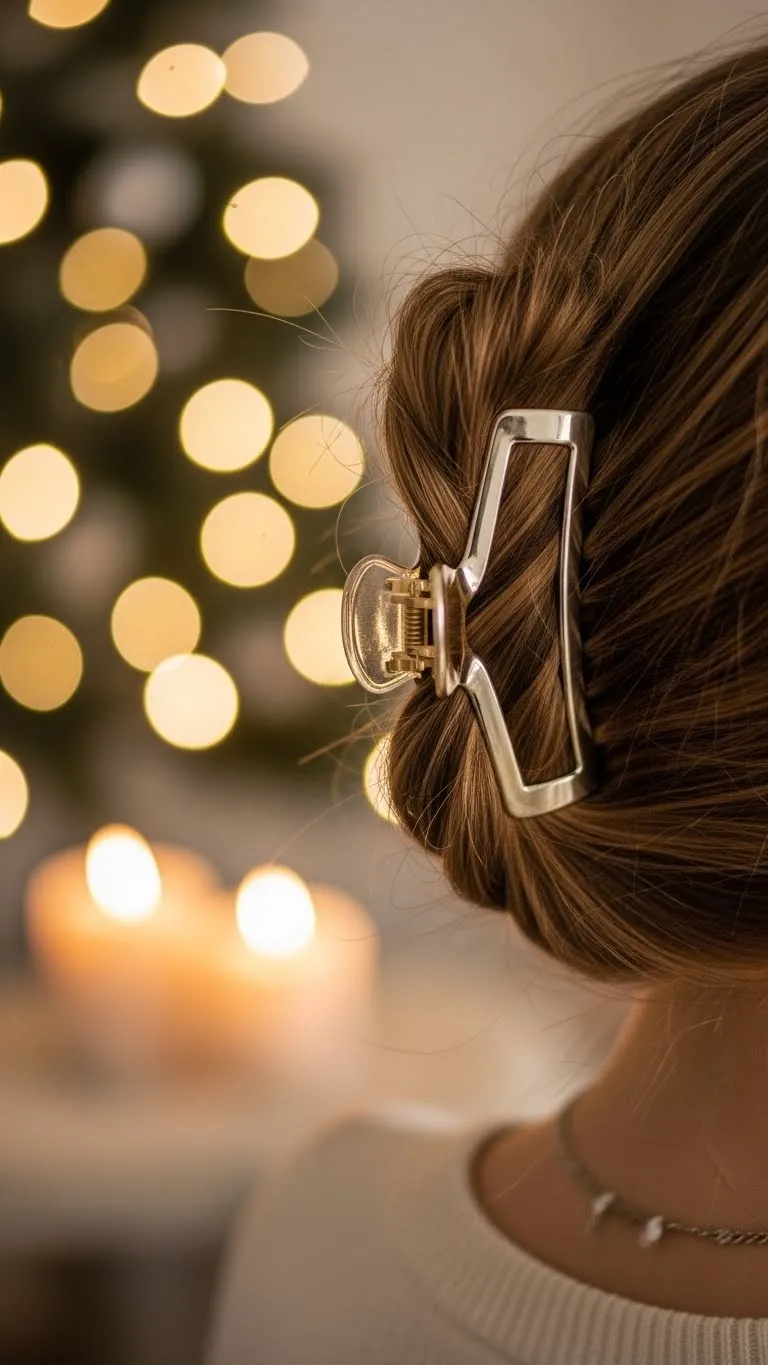 A claw clip twist is quick and stylish. Gather your hair, twist it upward, and secure with a clip. Claw clips come in holiday shades and cost very little. Keep the twist loose so it feels comfortable. This style works well for medium and long hair. If your hair is very straight, tuck the ends securely. It’s great for relaxed evenings when you want something simple yet pretty.