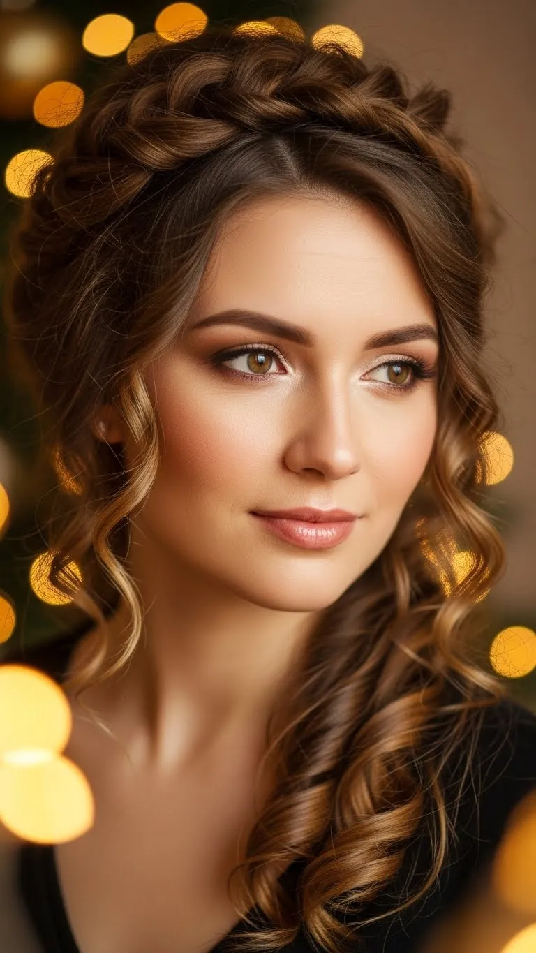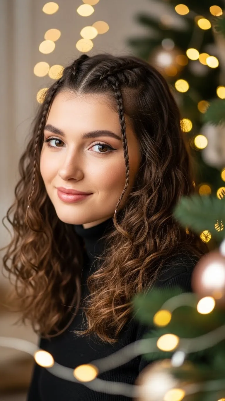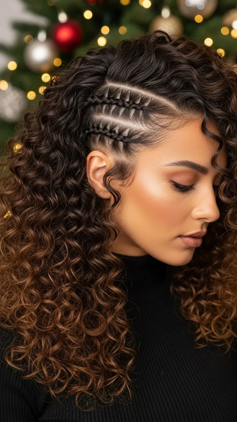 A simple front braid can change your whole look. Braid along the hairline and pin behind the ear. Fluff the curls behind. Use cream for smoothness. Add a small holiday pin if you want sparkle. This style keeps hair out of the face and works on many curl types.