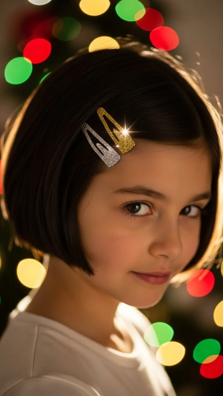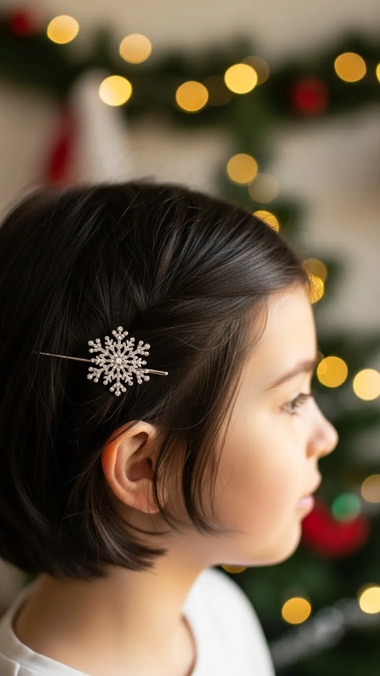 Two clips arranged in a diagonal line look stylish on short hair. Choose glitter versions for holiday shine. This works well when you’re short on time but want something festive. You can find affordable clip sets at discount stores. Switch the clip angle depending on the outfit.