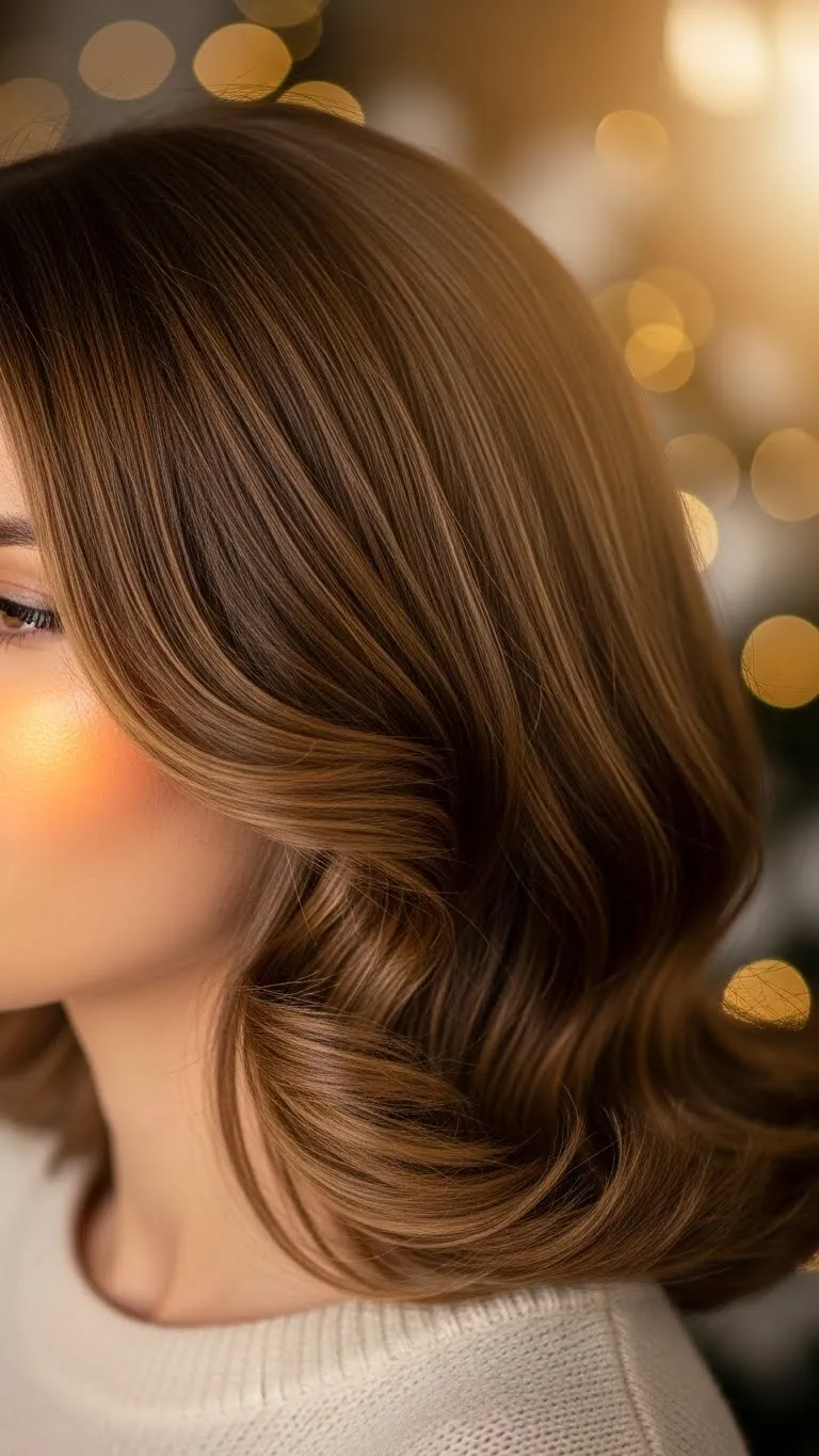 Curl your hair in the same direction on each side to create sweeping waves. Brush very lightly to blend the curls into a soft flow. Add a small metal clip for a seasonal touch. No fancy tools are needed—any medium barrel works. Spray lightly before curling if your hair struggles to hold shape. This classic look feels timeless and suits nearly any holiday plan.