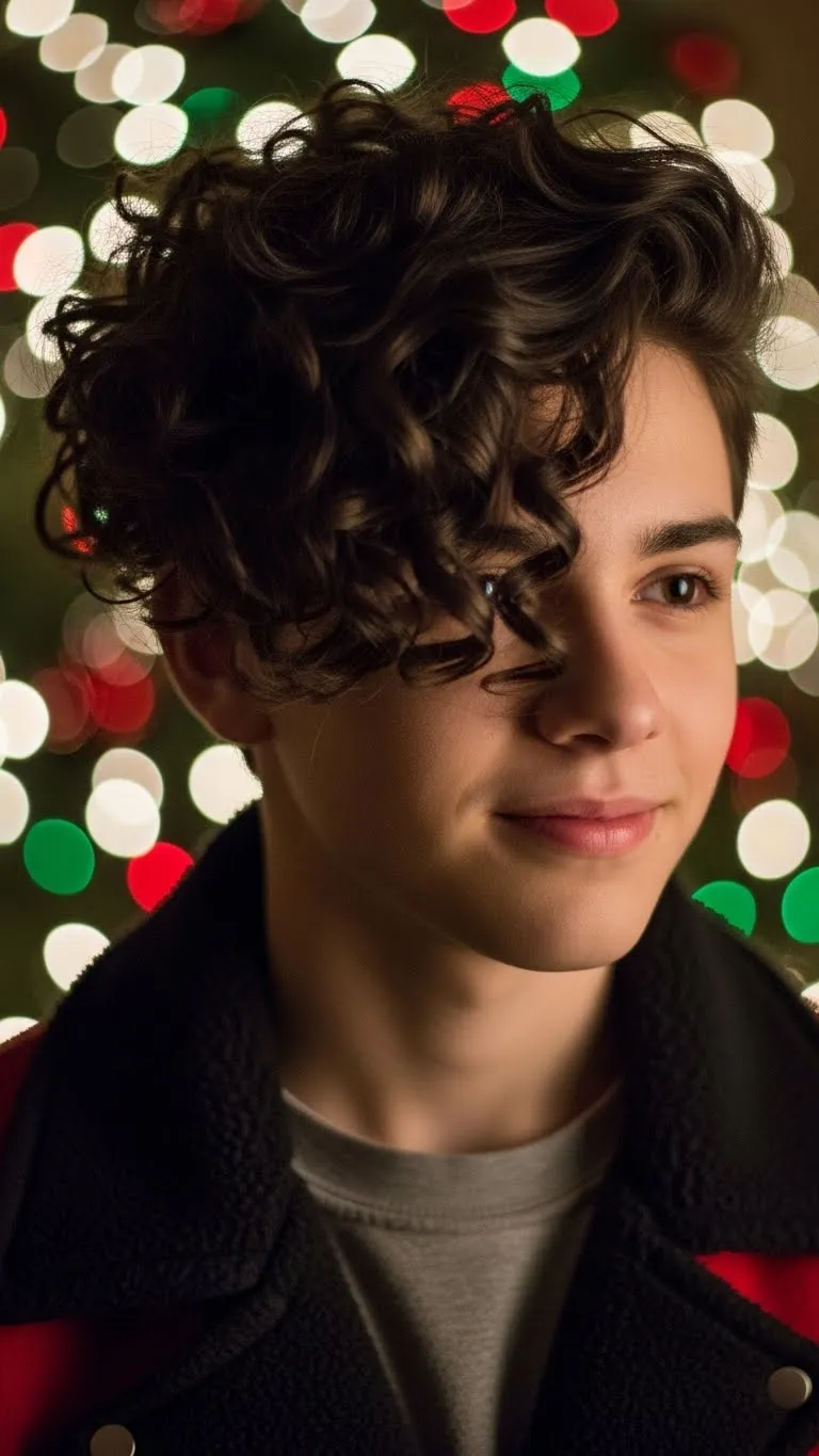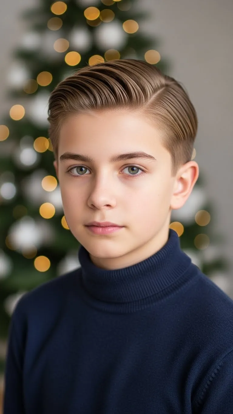 A sleek side part with shaped edges looks clean and stylish. Teens can smooth edges with a toothbrush and a small amount of gel. This style works on curly, coily, or straightened hair. Add a small holiday clip near the part for extra charm. You don’t need much product, so it’s budget-friendly. It stays neat for hours and pairs well with holiday outfits and accessories.