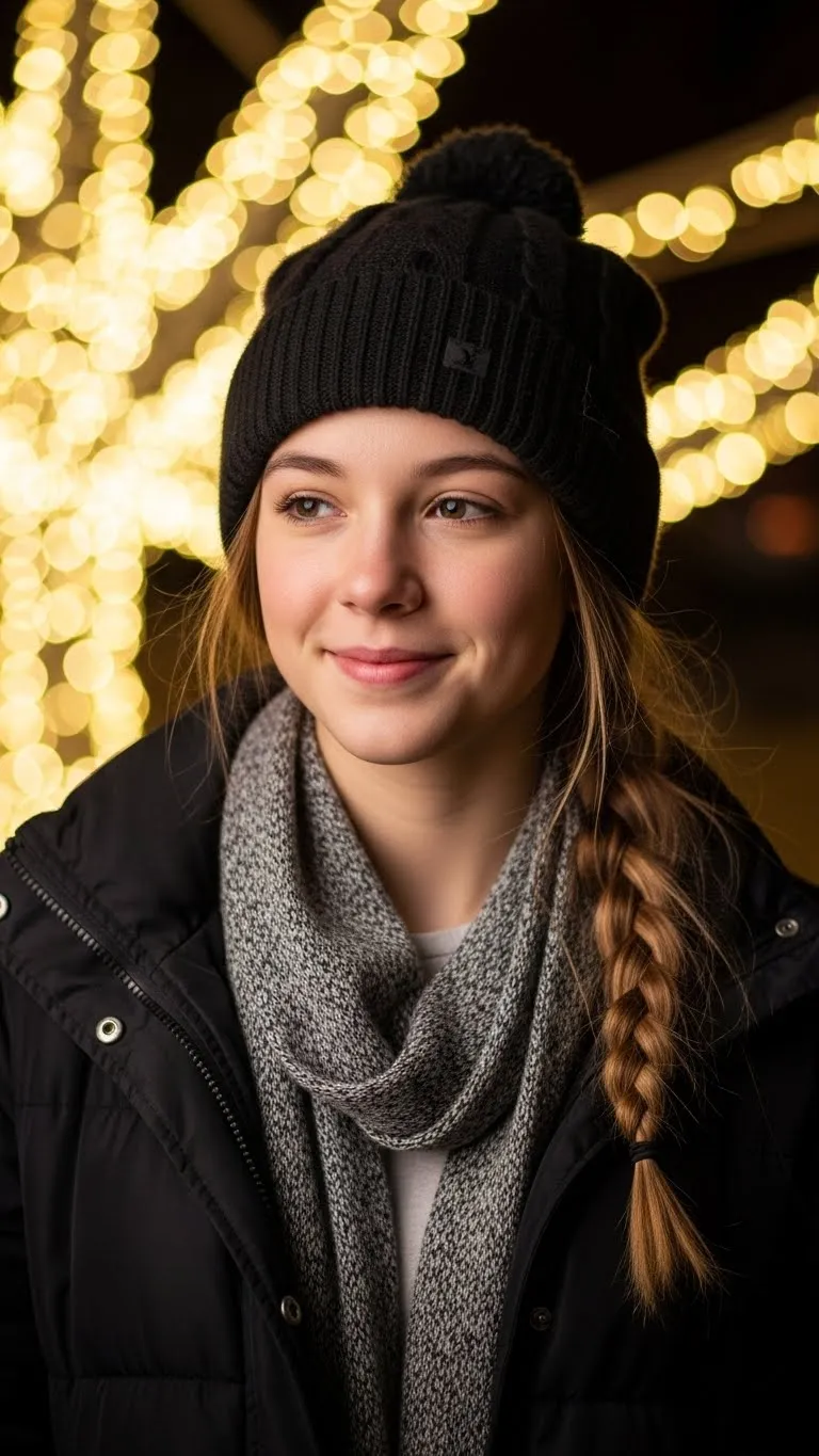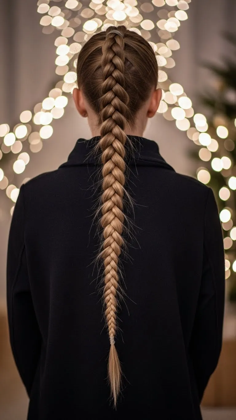 A braided ponytail keeps hair controlled but still cute. Make a high or mid pony and braid it to the end. Teens like it because it holds up during games, photos, and family gatherings. You only need a basic hair tie and one elastic for the end. Add a ribbon or holiday charm near the top for extra style. This option is great for long hair and quick prep days. It stays neat without much effort.