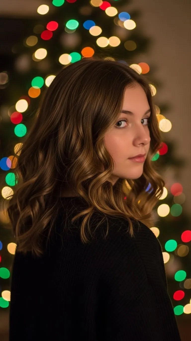 Loose waves bring effortless holiday style. Wrap medium sections around a wand for a few seconds and let them cool. Comb through with fingers so they look natural. Teens with tighter curls can stretch them slightly for a wave effect. A light mist of hairspray helps them last through the day. This style doesn’t require perfect technique, so it’s great for beginners. Use whatever clips or heat tools you already own—no fancy equipment needed. Finish with a hint of shine spray if you want extra sparkle for party photos.