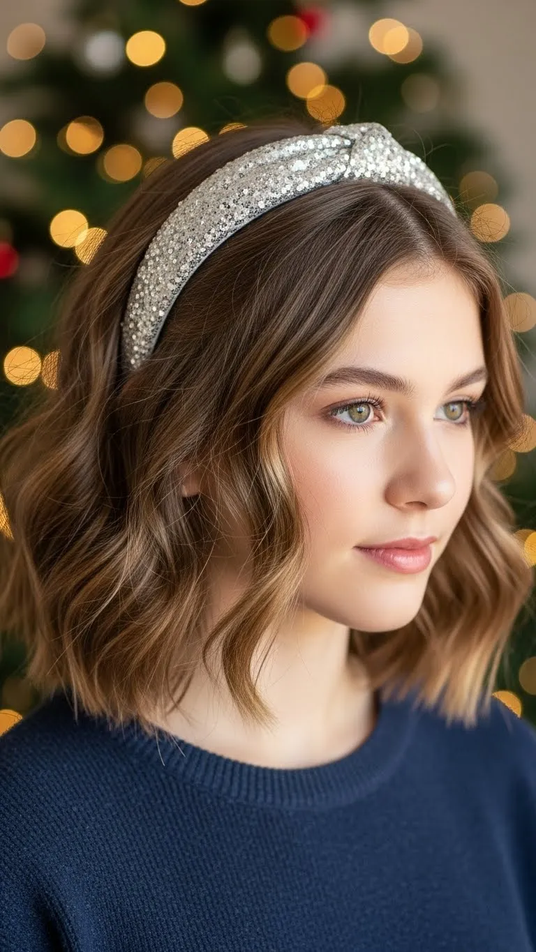Headbands instantly change a hairstyle. Add soft waves, then slide on a sparkly band. Teens find this especially easy before events. You don’t need high-end accessories—budget stores sell plenty of cute options. This works well on short, medium, or long hair. It’s perfect for busy mornings when you don’t have time to style much. The headband keeps hair off the face and adds a festive touch.