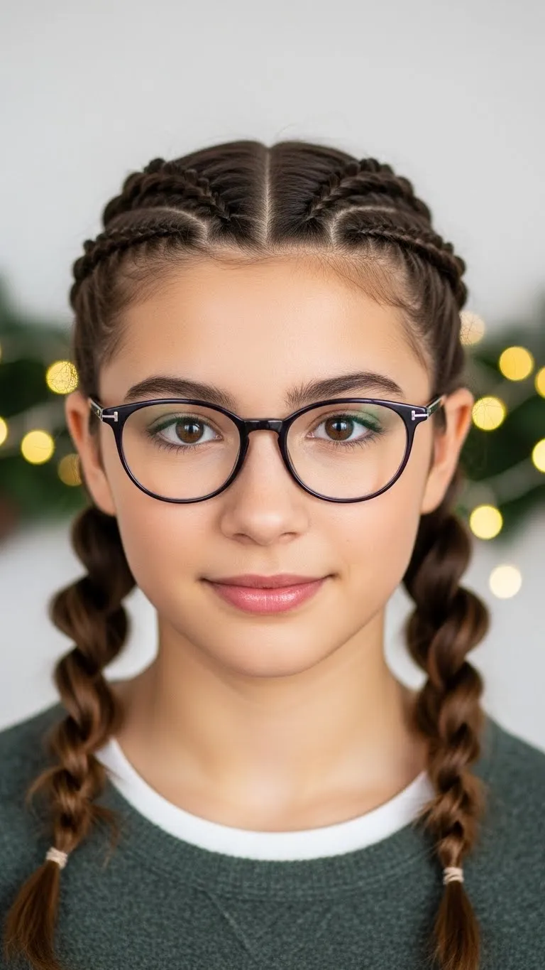 A side braid keeps things relaxed. Sweep hair to one side, braid loosely, and tie the end with a small elastic. Let a few strands fall out for a casual feel. Teens who don’t love tight hairstyles enjoy this look because it doesn’t pull on the scalp. It works well on long or medium hair. Use a ribbon or tiny charm at the end for a holiday detail. This braid stays cute all day without much adjustment. It’s perfect for cozy Christmas mornings.