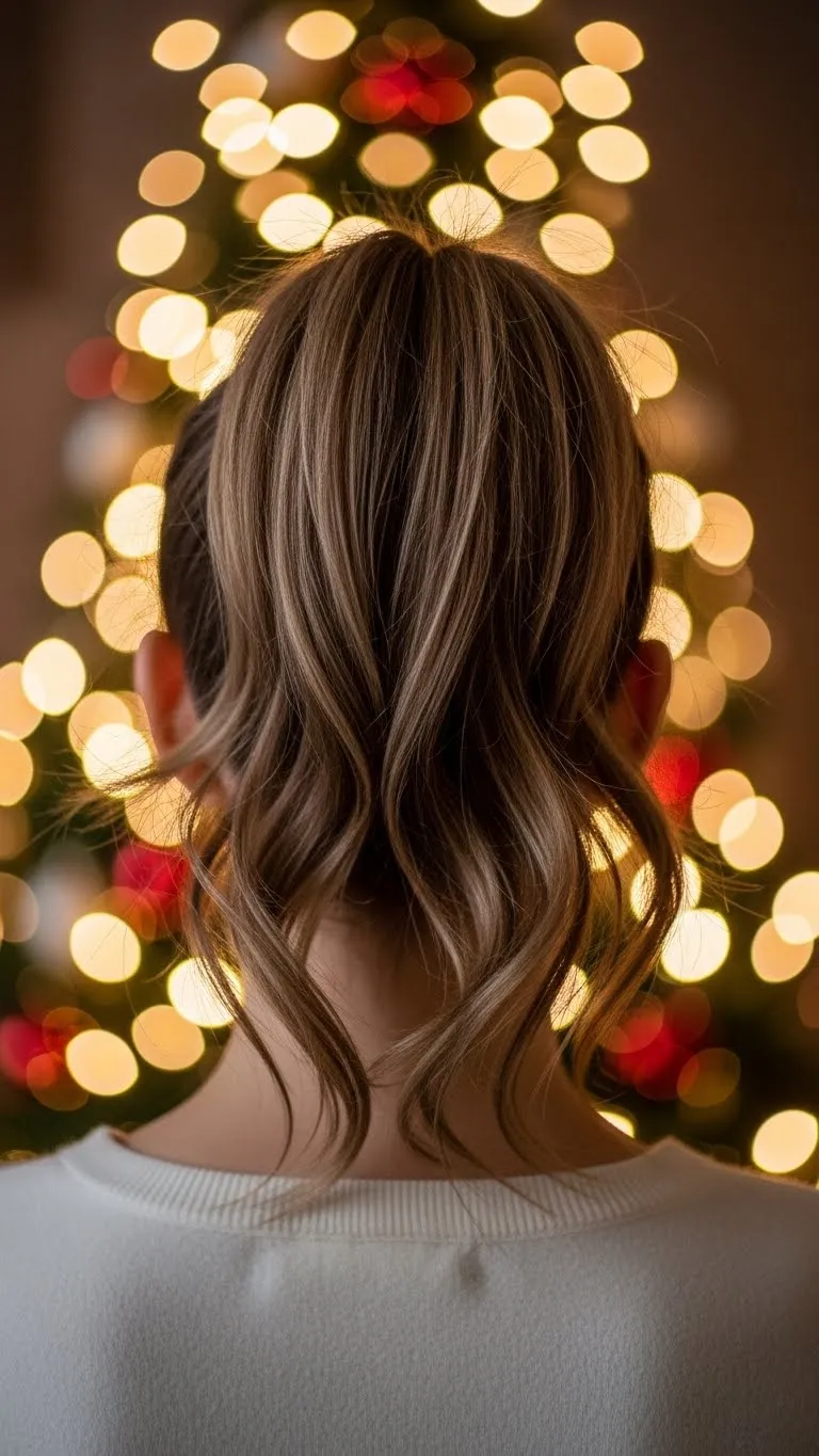 A low pony with a velvet ribbon feels simple and stylish. Brush your hair until it’s smooth, then tie it low at the nape. Add a ribbon bow for a holiday touch. Teens like it because it’s fast and works on busy mornings. Use a little serum to smooth flyaways, or skip it for a more relaxed vibe. Velvet ribbons are inexpensive and reusable, so you can match them to your outfit. This pony suits long or medium hair and looks great in holiday photos. If you want more shape, curl the ends lightly so they flip out in a gentle wave.
