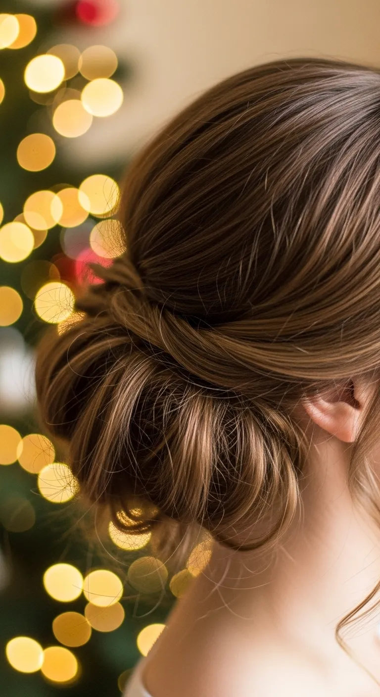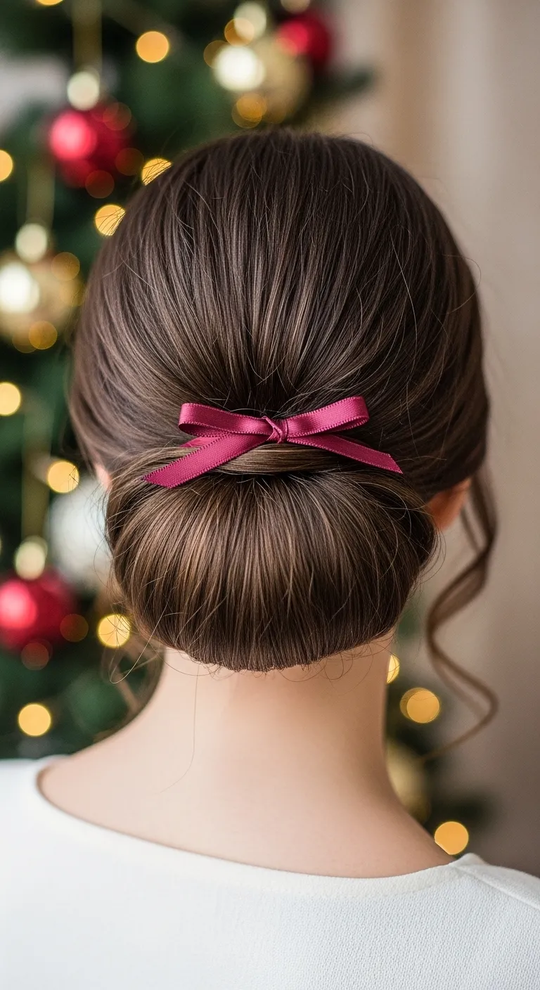 A side bun gives a sweet holiday look. Pull your hair to one side and twist it into a bun. Pin it loosely. Leave small strands around your face. Use a simple ribbon to tie around the base if you want color. This style is gentle and quick. If your hair is thick, divide it into two parts before twisting. It helps the bun stay balanced.