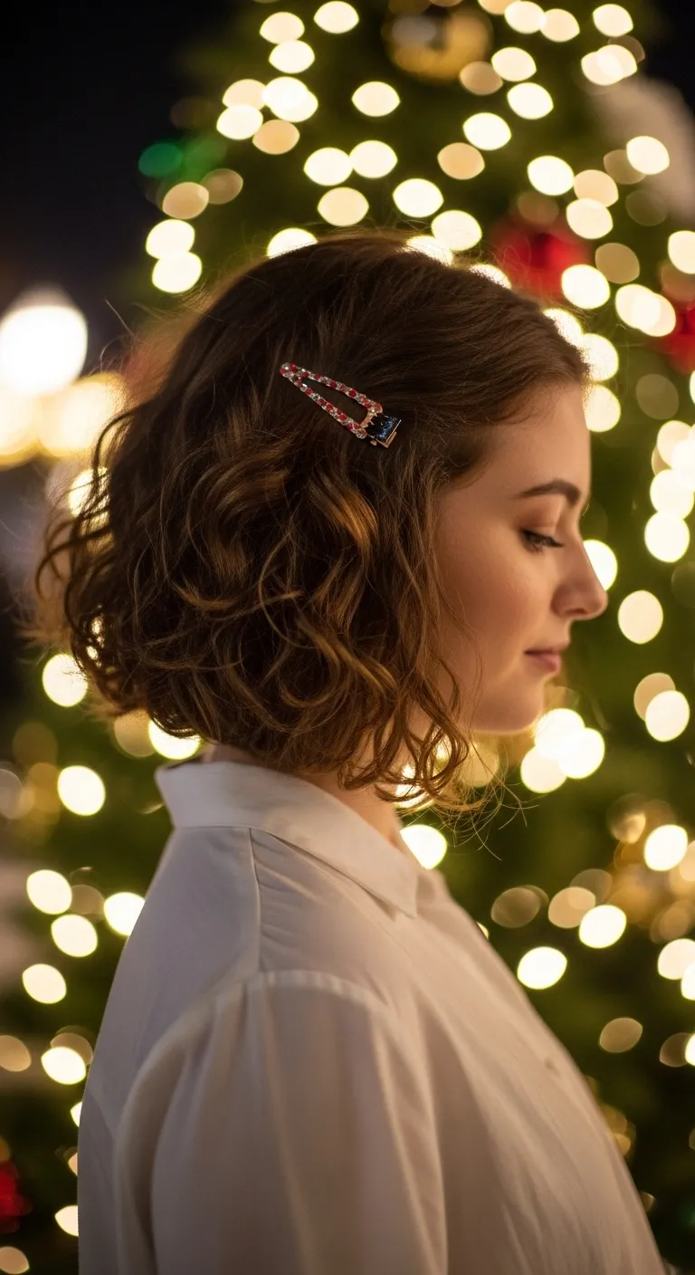 A curly bob looks lively and joyful. Refresh curls with water and curl cream. Scrunch gently. Let them air dry or use a diffuser. Add a clip for a seasonal touch. This works well for short to medium bobs. If one side falls flat, twist that section while it dries. This gives a balanced look. It’s simple and cheerful for Christmas outings.