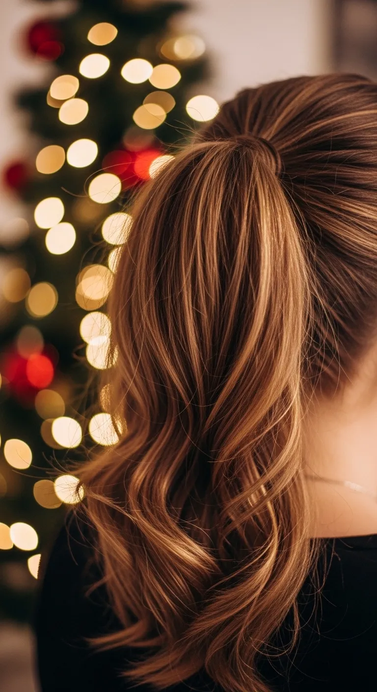 A high ponytail gives a clean, fun look for Christmas gatherings. Brush your hair upward and tie it securely. Wrap a small section of hair around the elastic for a smooth finish. Curl the ponytail ends or keep them straight. Add a bow or clip to match your outfit. Use a regular hairbrush and any elastic you already have. No special tools needed. If your ponytail droops, use two elastics stacked together for extra hold. A tiny bit of hairspray at the roots keeps the lift. This style works well with sweaters, dresses, and winter coats.