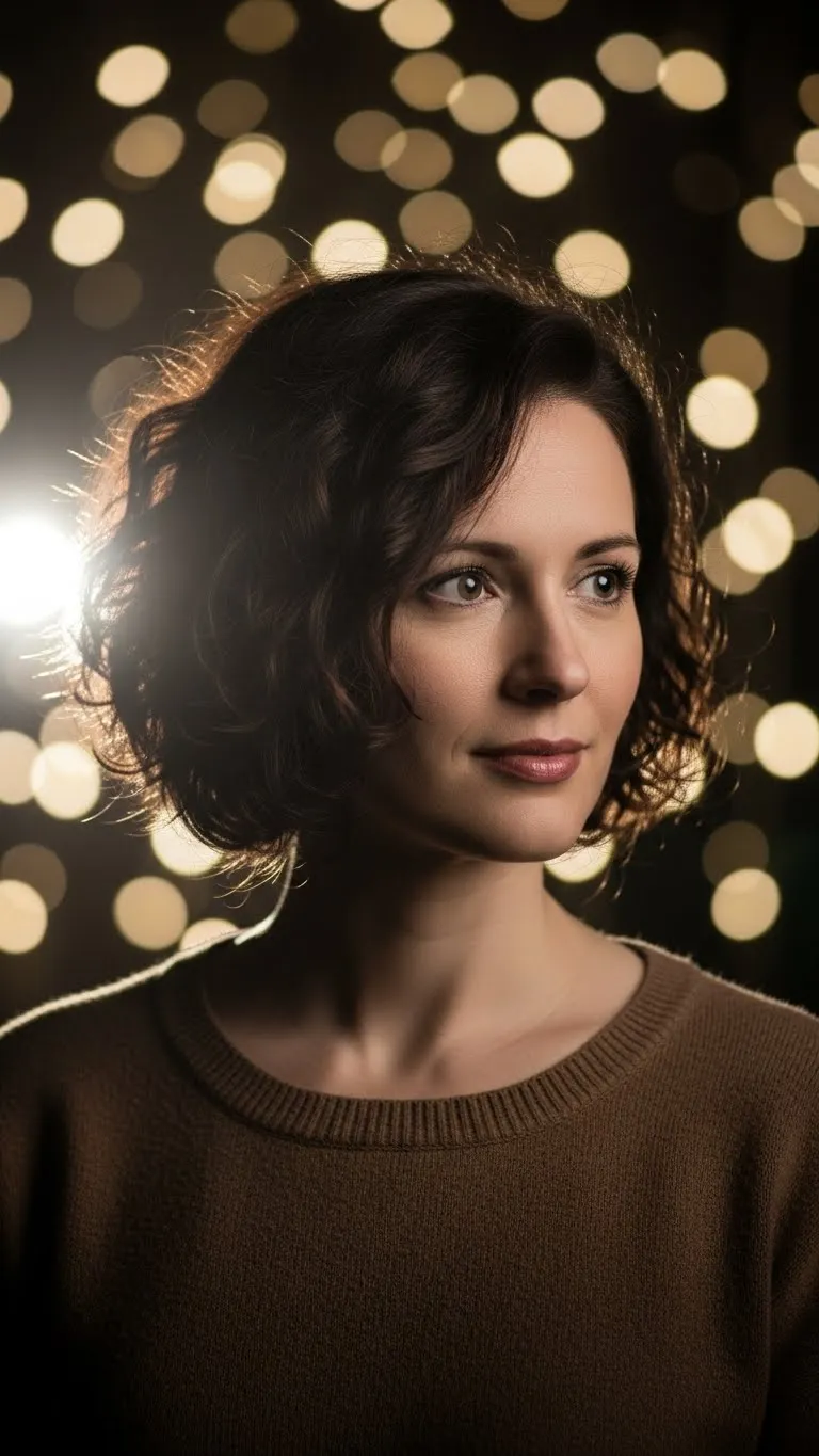 Side-swept curls add softness to short hair. Curl small sections using a wand or use your natural curls. Sweep everything to one side and secure the back with two pins placed in an X shape. This keeps the curls from falling forward. Add a soft clip or subtle shimmer piece for a holiday look. If your curls lose shape easily, apply a light-hold mousse before styling. This keeps them springy without stiffness. You can finger-comb through the curls for a natural finish. It frames one side of your face while leaving the other open, which photographs well. This style works for dinners, photos, or casual evenings. It’s an easy choice when you want softness without complexity.