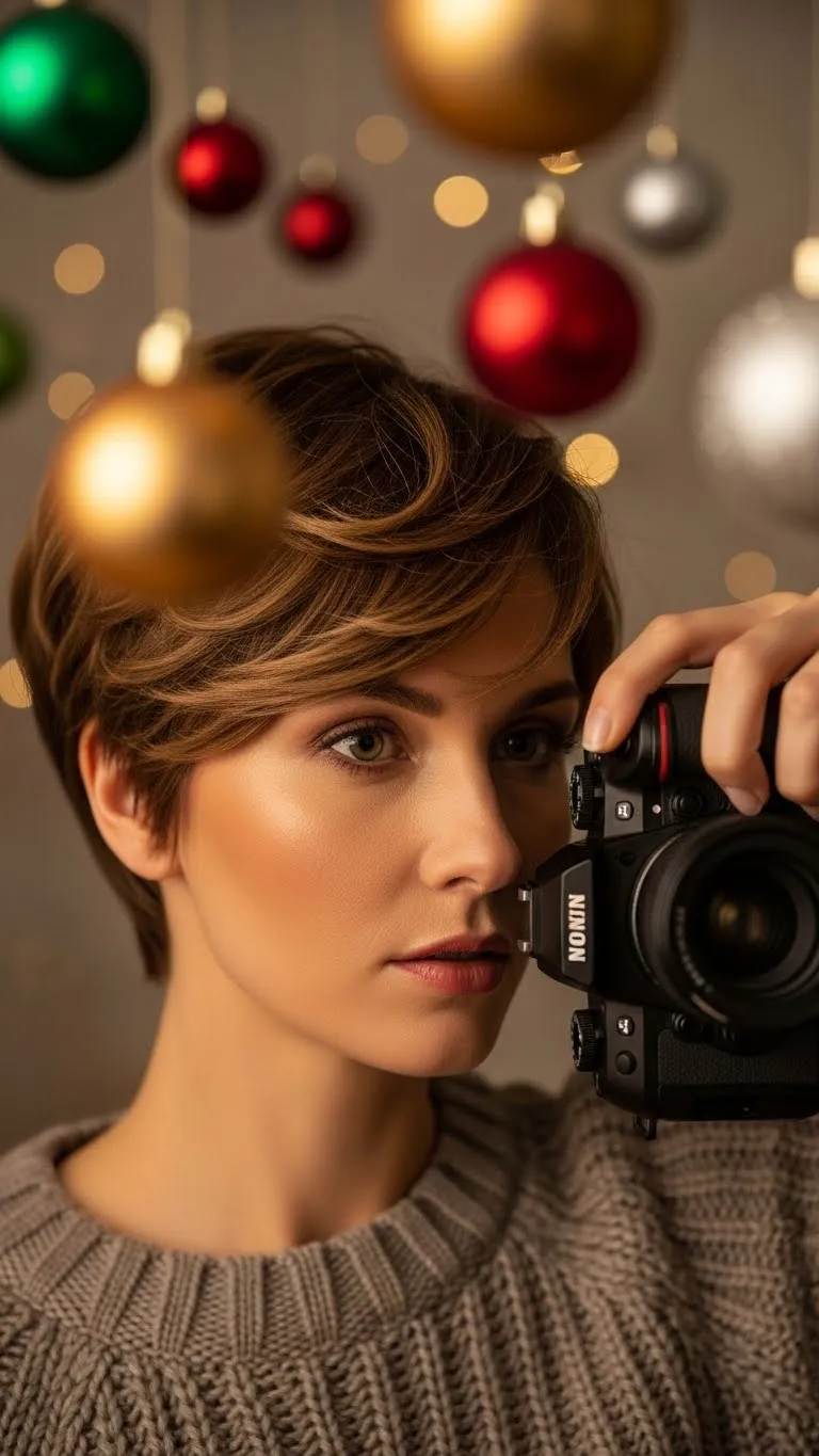 Messy texture gives short hair a relaxed holiday feel. Apply a lightweight mousse to damp hair. Use your fingers to lift the roots and scrunch the ends. Let it air dry for a natural pattern. If you want stronger shape, pinch small pieces together while they’re still damp. This creates defined texture without making the hair stiff. Add one tiny metallic pin on the side for a simple seasonal accent. It’s affordable and easy to match with any outfit. The messy texture hides uneven layers or growing-out cuts. If your hair feels flat by the afternoon, flip it forward and shake it out. You don’t need any heat tools or sprays unless you want more control. This is a low-effort style for casual gatherings, photos, or daily holiday errands.