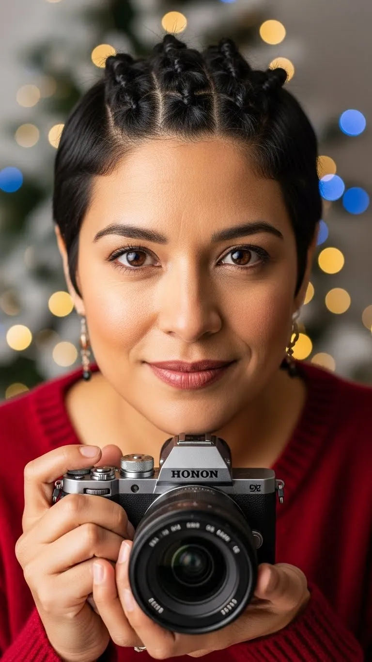 A twisted pixie adds gentle charm to short hair. Start by parting the front into two small sections. Twist each side back and secure with tiny pins. Keep the twists loose so they don’t look stiff. Use a light hair cream to smooth flyaways. This helps the twists stay tidy without feeling heavy. If you want extra shine, rub a tiny bit of hair oil on your fingertips and lightly touch the ends. Add a small clip with a metallic finish for a holiday vibe. Silver and gold work well because you can reuse them for different outfits. If you’re rushing, skip curling or extra styling. This twist-only look already frames the face nicely. It works for everyday plans or simple gatherings. You can redo it in minutes if you’re going from day to night. It’s a gentle hairstyle that looks relaxed but still holiday-ready.