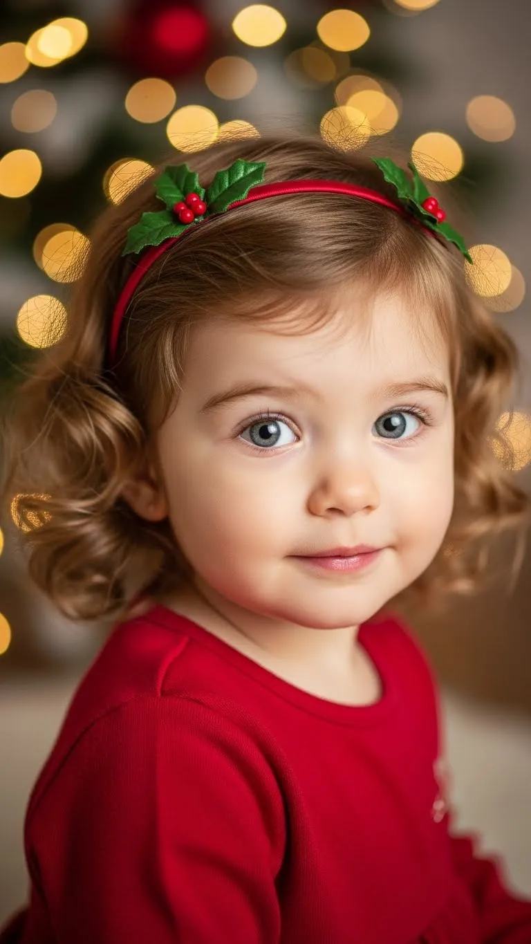 Brush the hair lightly and curl the ends by twisting damp sections around your fingers. Place a thin holly-themed headband on top. Keep the band flexible so it doesn’t press too hard. You can make a holly band by attaching small felt leaves and red beads to a plain elastic headband. This gives a festive touch without effort.
