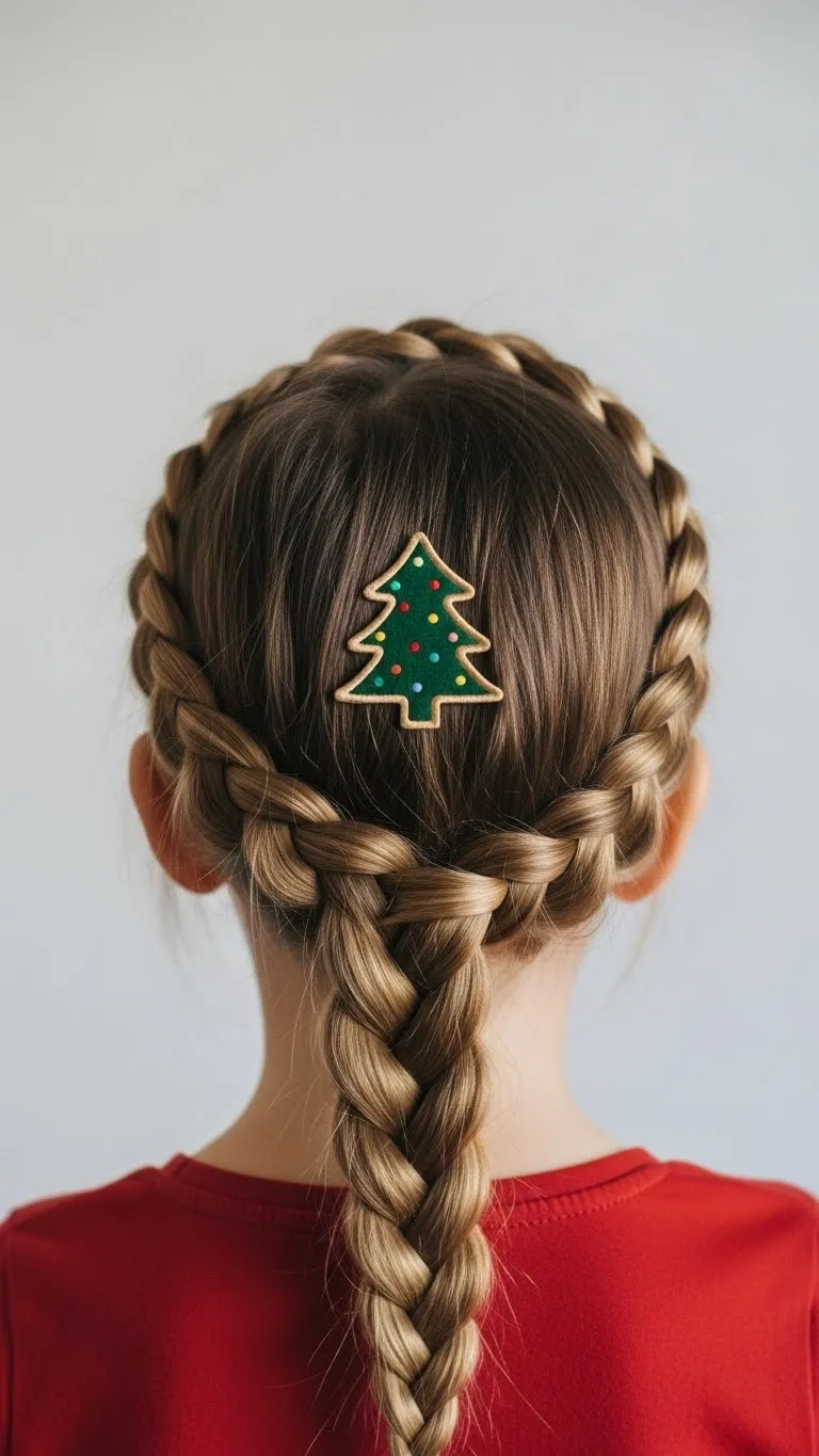 Place one tree-shaped clip on a braid or ponytail. Quick, gentle, and festive. Ideal for kids who prefer something minimal.