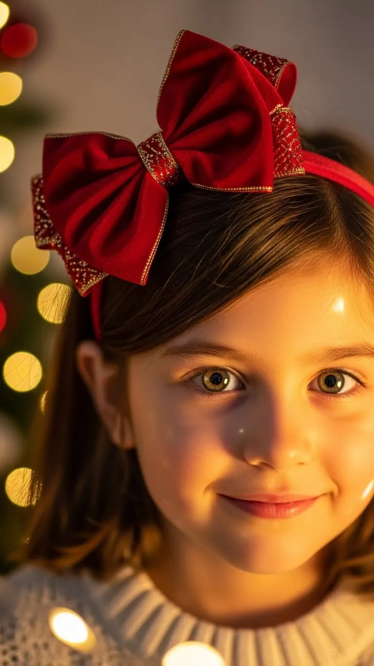 A bow headband is easy for busy mornings. Slide it on and adjust the hair around it. Kids like picking different bow sizes. Red and green are favorites. This works on all hair lengths and textures. It costs very little and lasts for years. Add small braids or twists to make it feel special. Perfect for school, parties, or everyday wear during December.