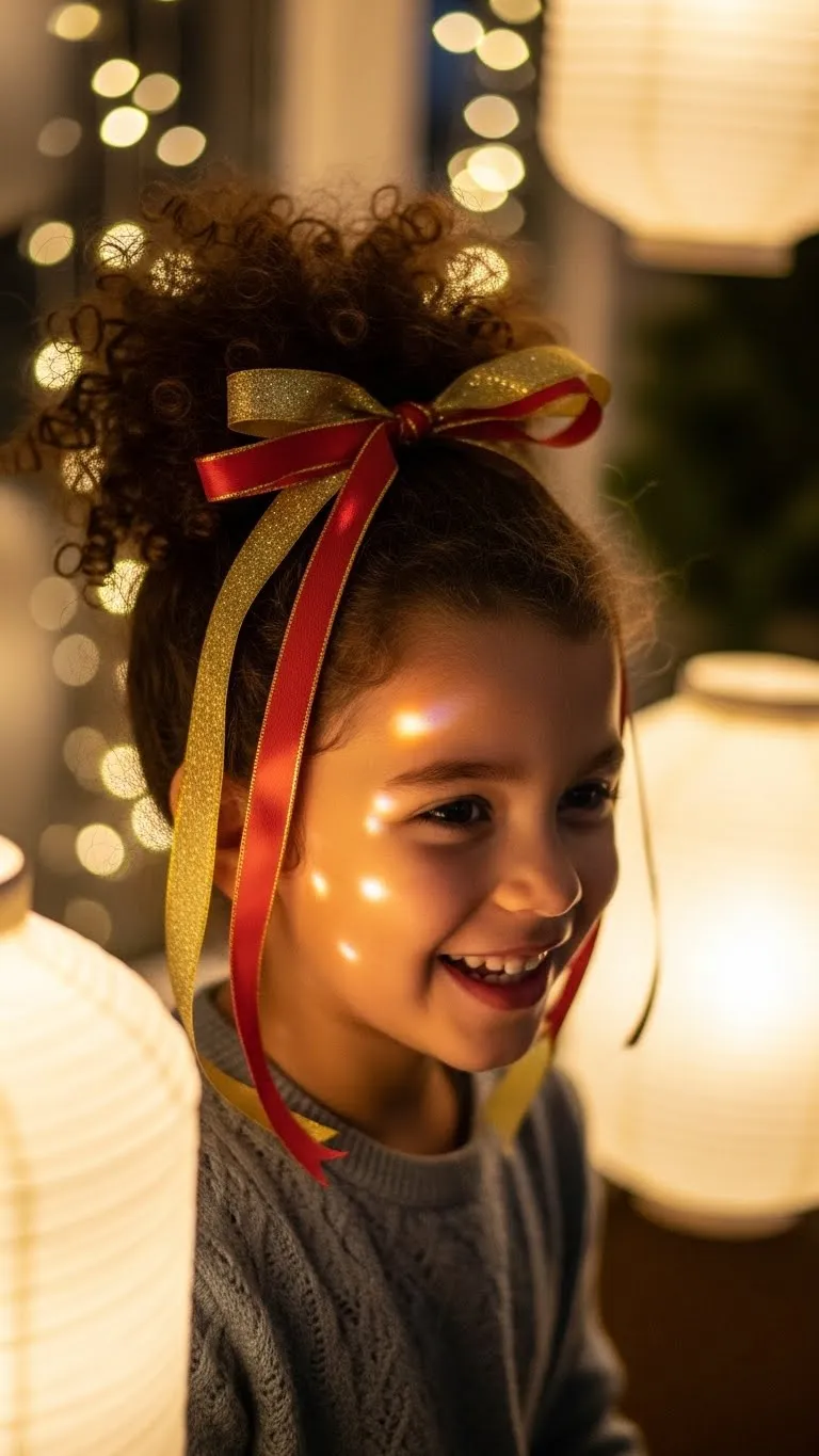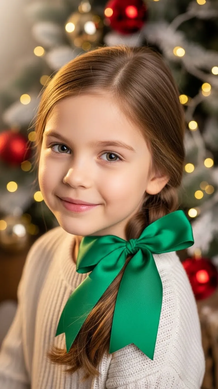 Create a low side ponytail and tie it with a holiday bow. Keep it loose so it feels soft. Smooth the top with a bit of water if needed. This look works for all hair types and takes under a minute to create. It’s great for kids who prefer simple, tidy styles.