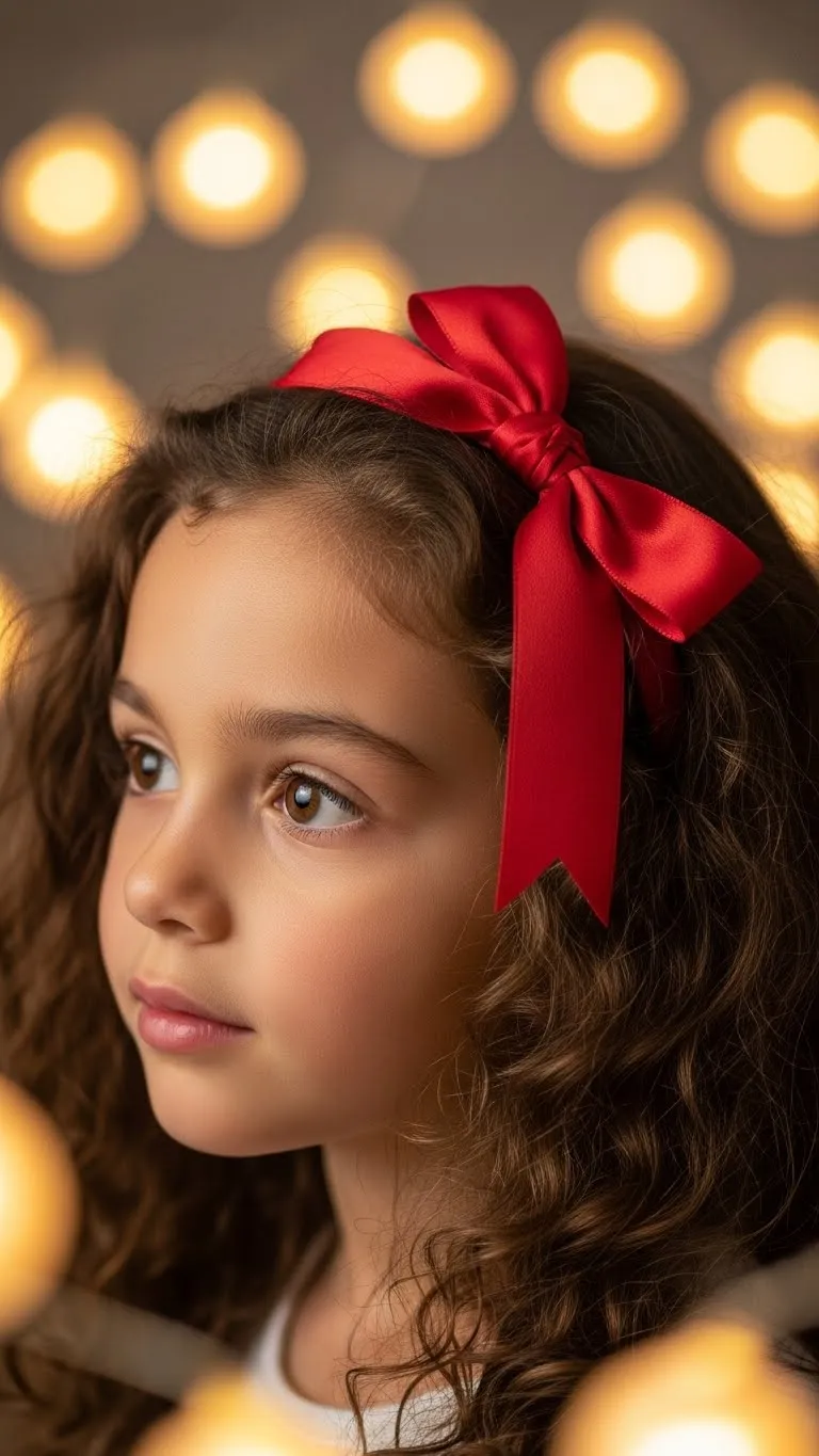 Slide on a soft ribbon headband to keep hair away from the face. Choose stretchy fabric so it stays comfy. You can leave the hair down or add tiny twists on the sides before placing the headband. This style works for kids who dislike ponytails or clips. It’s easy, festive, and affordable.