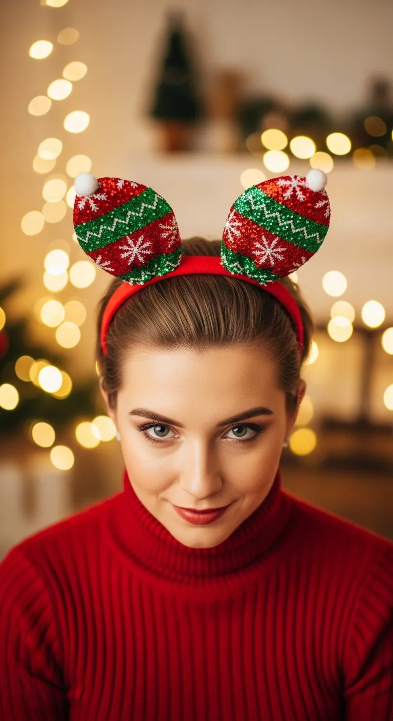 A headband makes styling quick and pretty. Push your hair back with a velvet or satin headband in red, green, or gold. Add soft waves for texture or leave it natural. If the headband slips, spray it lightly underneath for grip. This option is great when you want something that stays put through parties and photos. It’s also a cheap way to add holiday color.