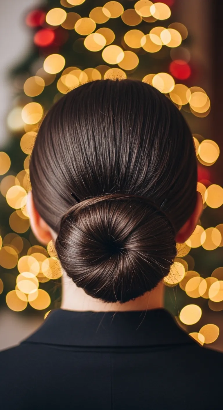 A low bun with a middle part gives you a tidy, calm look. Part your hair down the center, brush it smooth, and gather it at the nape. Twist it into a small bun and secure with pins. This works well when you want your earrings or neckline to stand out. It’s also great for last-minute events because it needs only a few moves. If your hair slips, use a small amount of hairspray or mousse before pulling it back. You can wrap a thin gold wire around the bun for a simple holiday touch. It’s cheap, light, and reusable. The style stays steady during movement and feels comfortable even under scarves or hats.