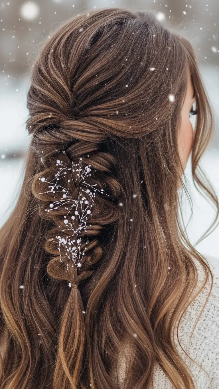 A lattice braid looks fancy but is easier than it appears. Make several thin braids and interweave them across the back. Pin them where they cross. Add tiny snowflake clips. Snowflake clips are affordable and come in multipacks. Keep the rest of your hair curled or straight. This style is perfect for winter events. If your hair is short, create a smaller lattice at the crown.