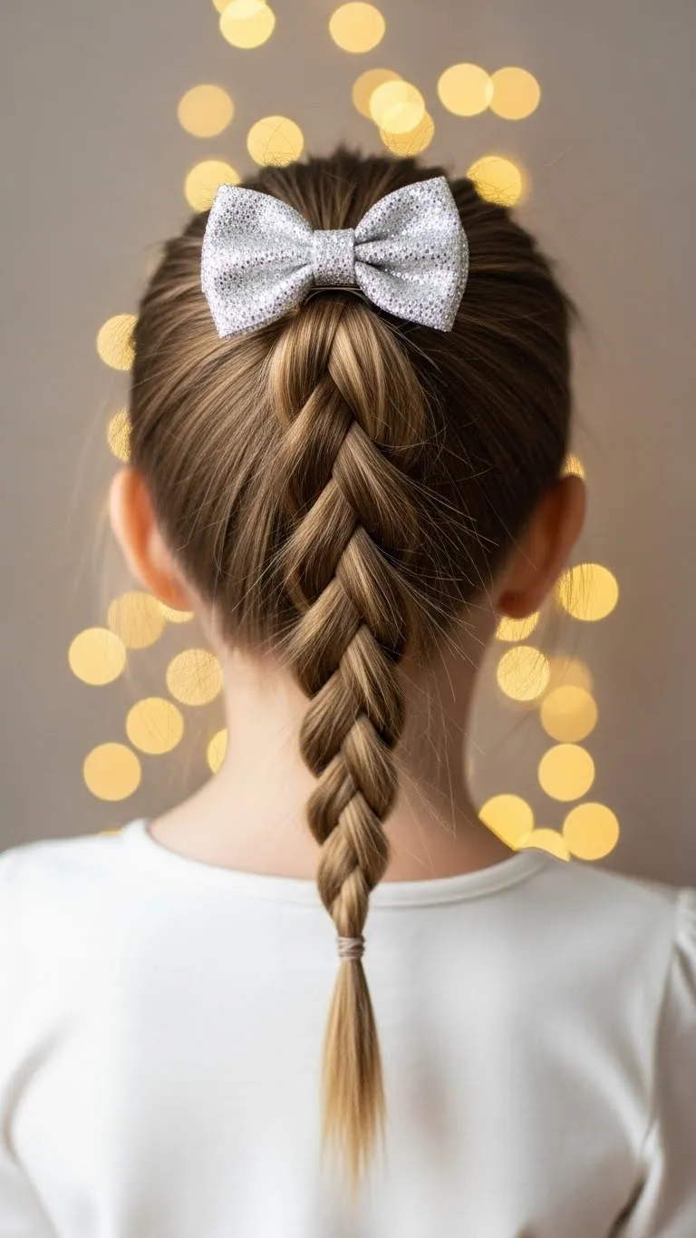 A Braided Gift Bow Pony combines fun and simplicity. Tie a ponytail, braid it loosely, then place a gift bow clip at the top. Use a fabric bow instead of sticky ones for comfort. Kids like how soft the bow feels. This style stays neat for hours. If the braid frays, add a small elastic at the bottom. It works for long or medium hair. You can match the bow to the outfit.
