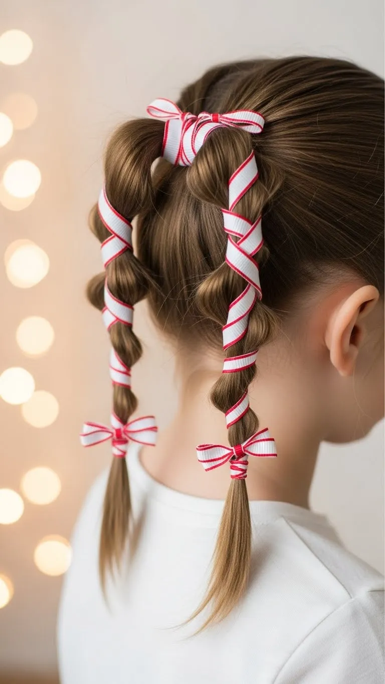 The Peppermint Twist Pony looks playful and neat. Split the ponytail into two sections. Twist each one, then wrap thin red-and-white ribbon around them. Secure with small elastics. This gives a candy-theme effect. Kids love the bright colors. Ribbon packs are affordable and easy to handle. For extra comfort, avoid wrapping too tightly. Great for quick mornings.