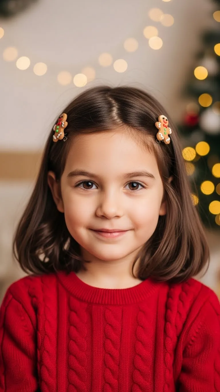 The Gingerbread Clip Style is simple yet cheerful. Place gingerbread-shaped clips at the sides of the hair. They’re usually soft and kid-friendly. Kids enjoy the cute shapes. This works for all hair lengths. Brush gently to avoid tangles. These clips are inexpensive and sold in multipacks. Great for school or casual gatherings.
