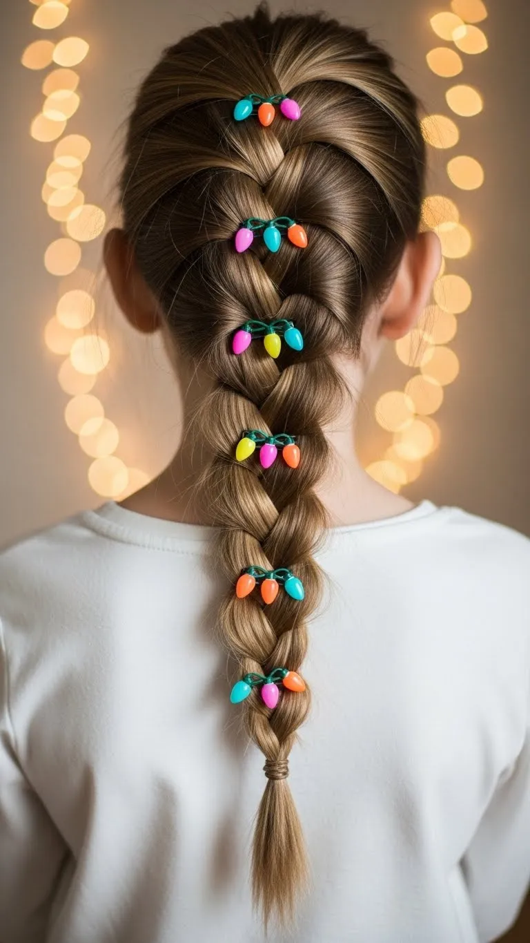 The Christmas Lights Braid brings color and fun. Make a loose braid down the back. Attach small light-shaped clips along the braid. Choose soft plastic versions so they feel light. Kids enjoy the bright look. These clips are cheap and come in sets. This style stays put and works well for long hair. Add a light mist of water before braiding to smooth flyaways.