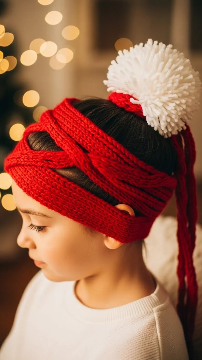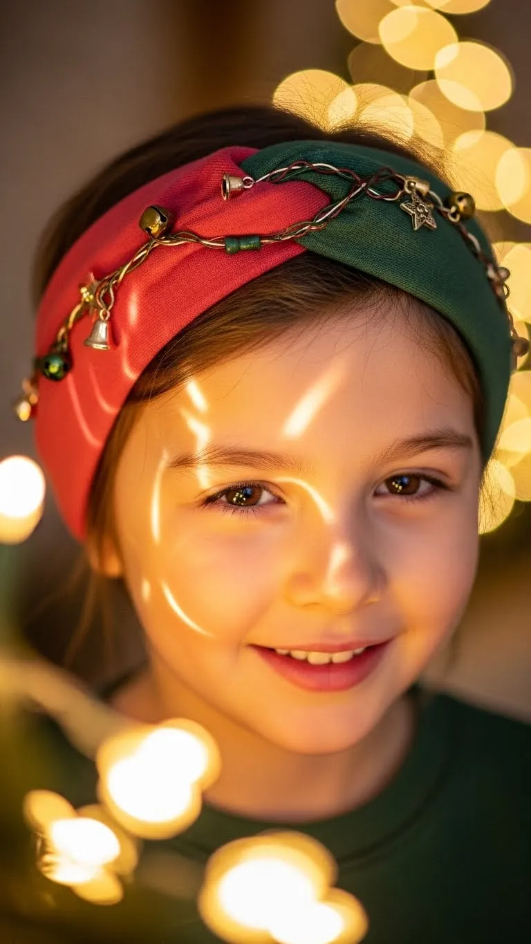 The Twisted Christmas Headband Style is fast and comfortable. Slide on a soft holiday headband. Twist small front sections into the band so it holds them back. Kids love the gentle fit. You can find soft bands for very little money. This works well for all hair types. Brush lightly beforehand to avoid tangles. It’s a great no-fuss choice for busy mornings.