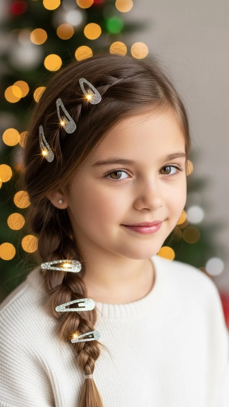 This simple style is perfect for younger kids. Take small front sections and clip them across each other in a criss-cross pattern. Use holiday colors for a festive feel. It keeps hair off the face without pulling. This look works well on any length or texture. You only need a few clips, making it budget-friendly. It’s great for mornings when you want something quick but adorable.