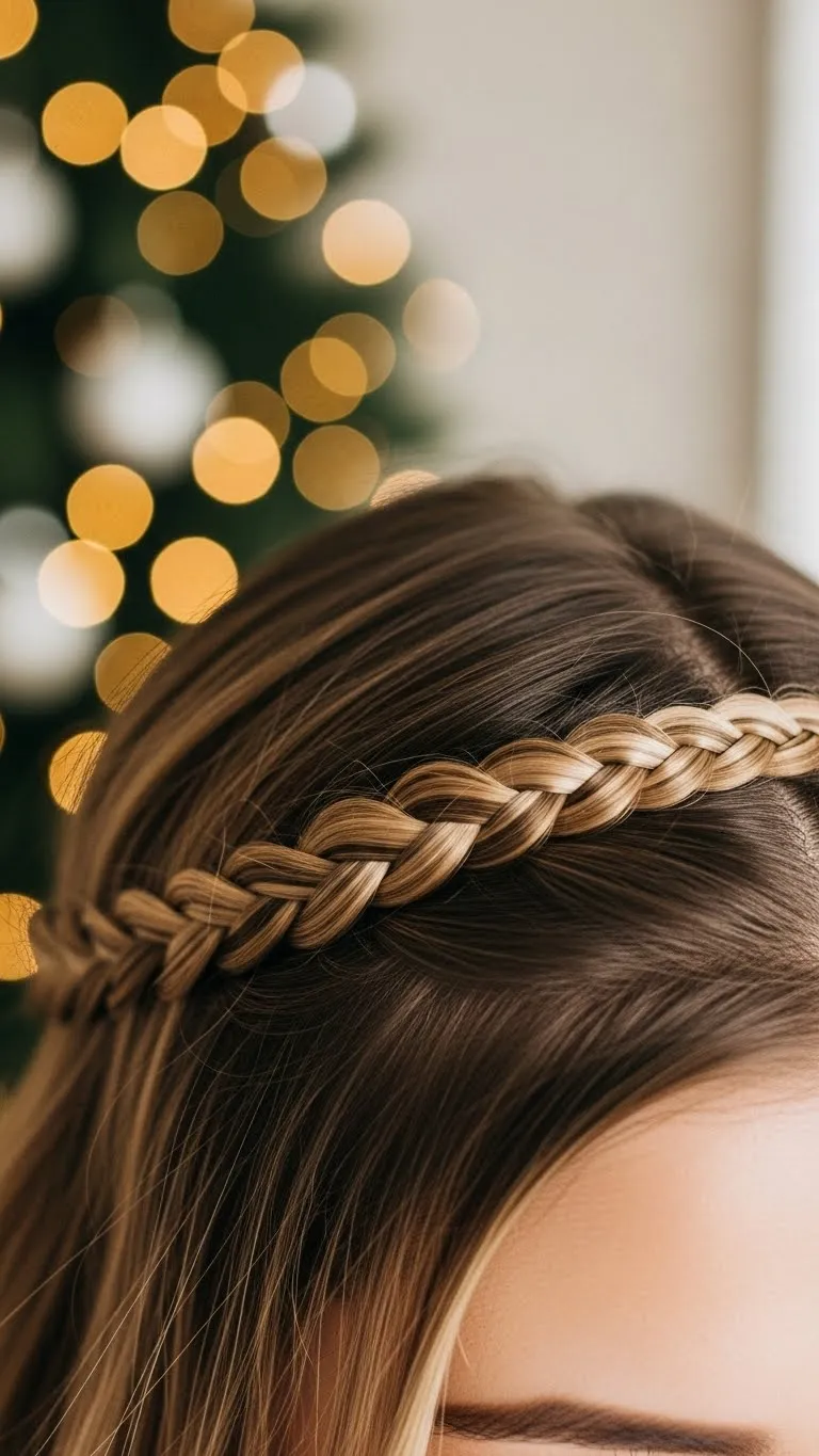 Braid a thin section from behind one ear and bring it across the top like a headband. Secure it behind the opposite ear. This keeps hair out of the face and adds a sweet touch. Add a small red or green clip to the end for color. Works on medium or long hair. Parents love how well it stays in place. It pairs well with holiday outfits.