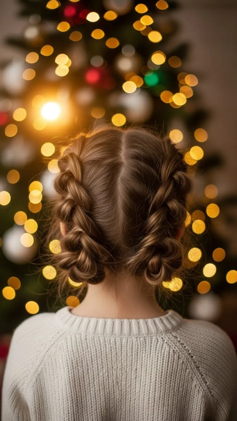 Start by twisting the front sections and bringing them into low pigtails. Secure with holiday elastics. This gives a soft and tidy look. Works well on all textures. You can add small ribbons for extra charm. If your child has short hair, twist only the top layer. This style stays comfortable and takes minimal time.