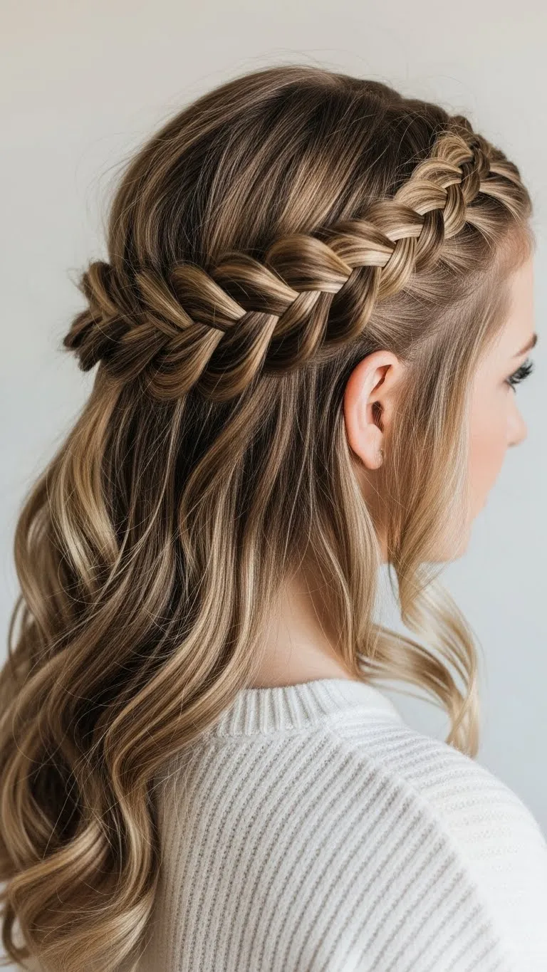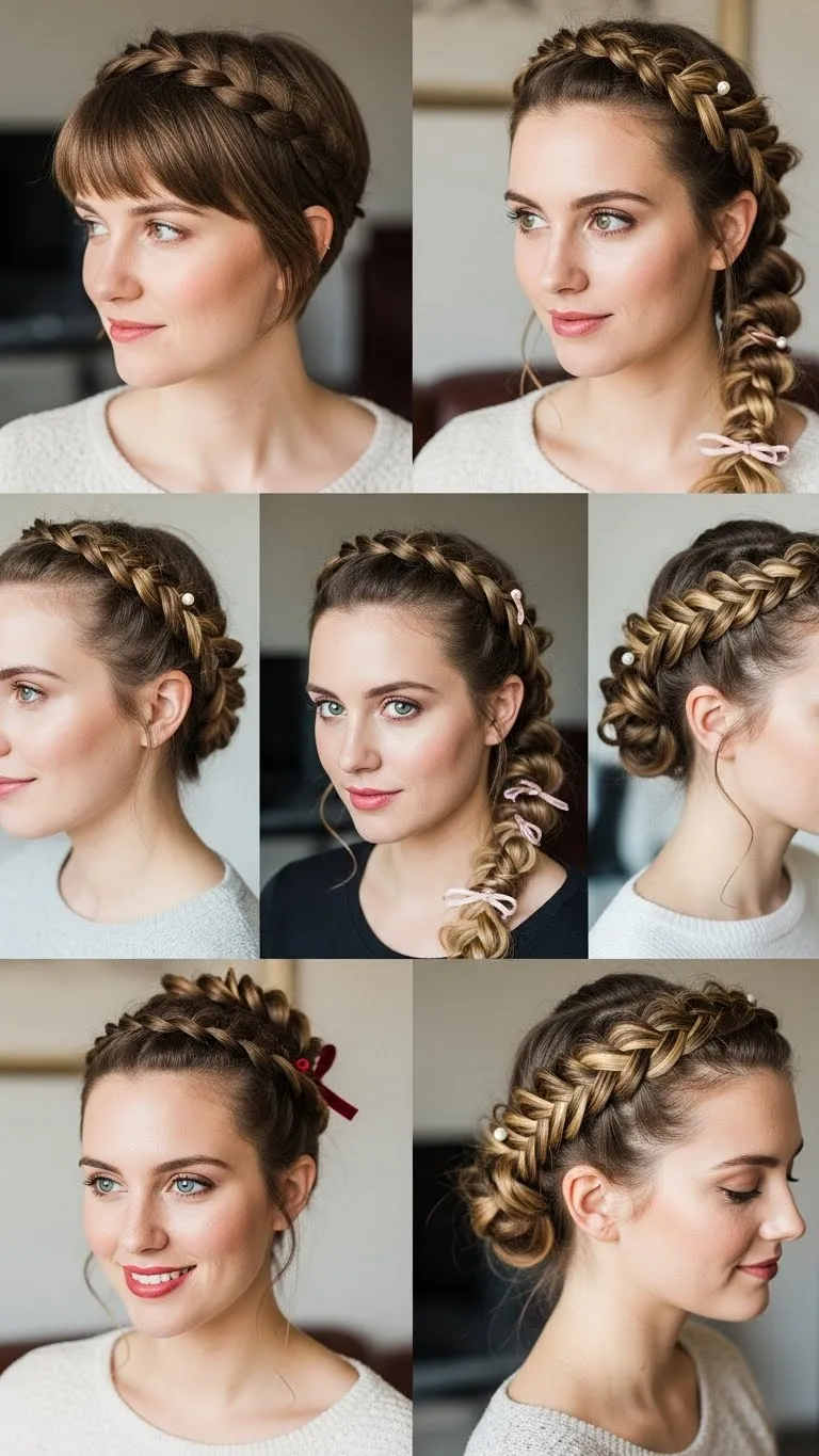 Milkmaid braids feel romantic without being heavy or tight. Create two loose braids and wrap them across the top of the head, securing them with pins underneath. The key is keeping the braids relaxed so the style stays comfortable for long wear. Pull small sections loose around the temples and hairline to soften the shape. This hairstyle works well on medium to long hair and stays secure even without strong products. It pairs nicely with cozy Valentine outfits and simple makeup. As the braids loosen slightly, the style continues to look intentional rather than messy.