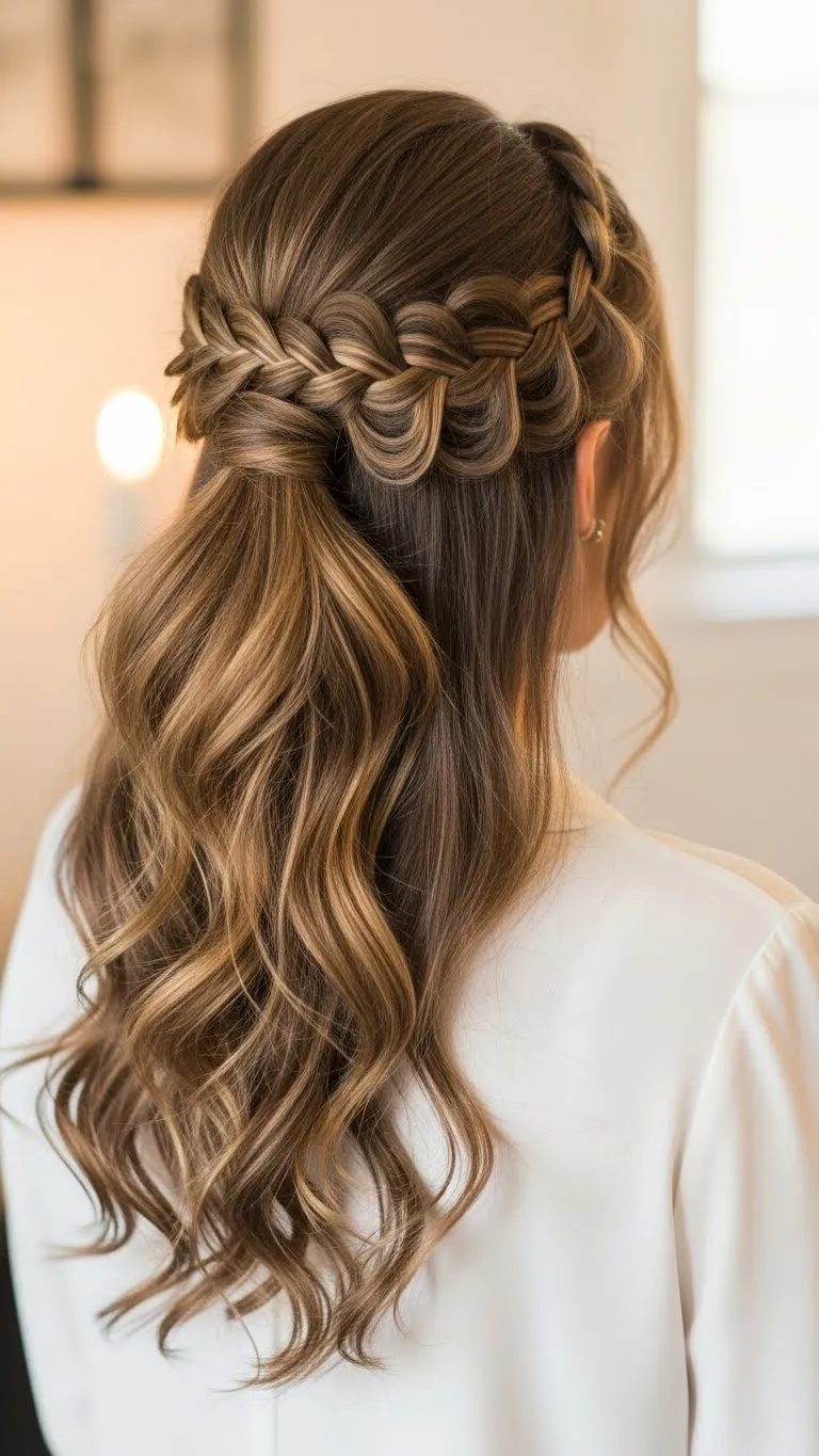 The half-up braided crown works well when you want something romantic but still comfortable for a full day. Start by taking small sections from both sides of your head and braiding them loosely. Bring them toward the back and pin them together gently. The goal is softness, not tight control. This style allows your natural hair texture to stay visible, which helps the look feel relaxed and wearable. It works well on straight, wavy, or lightly curled hair and does not require heat tools. If your hair feels flat, use dry shampoo at the crown before braiding to add grip. The loose hair left down keeps the style balanced and prevents it from feeling heavy. This braid is ideal for casual Valentine plans, daytime outings, or dinners where comfort matters. As the day goes on, the braid softens more, which actually improves the look rather than ruining it.
