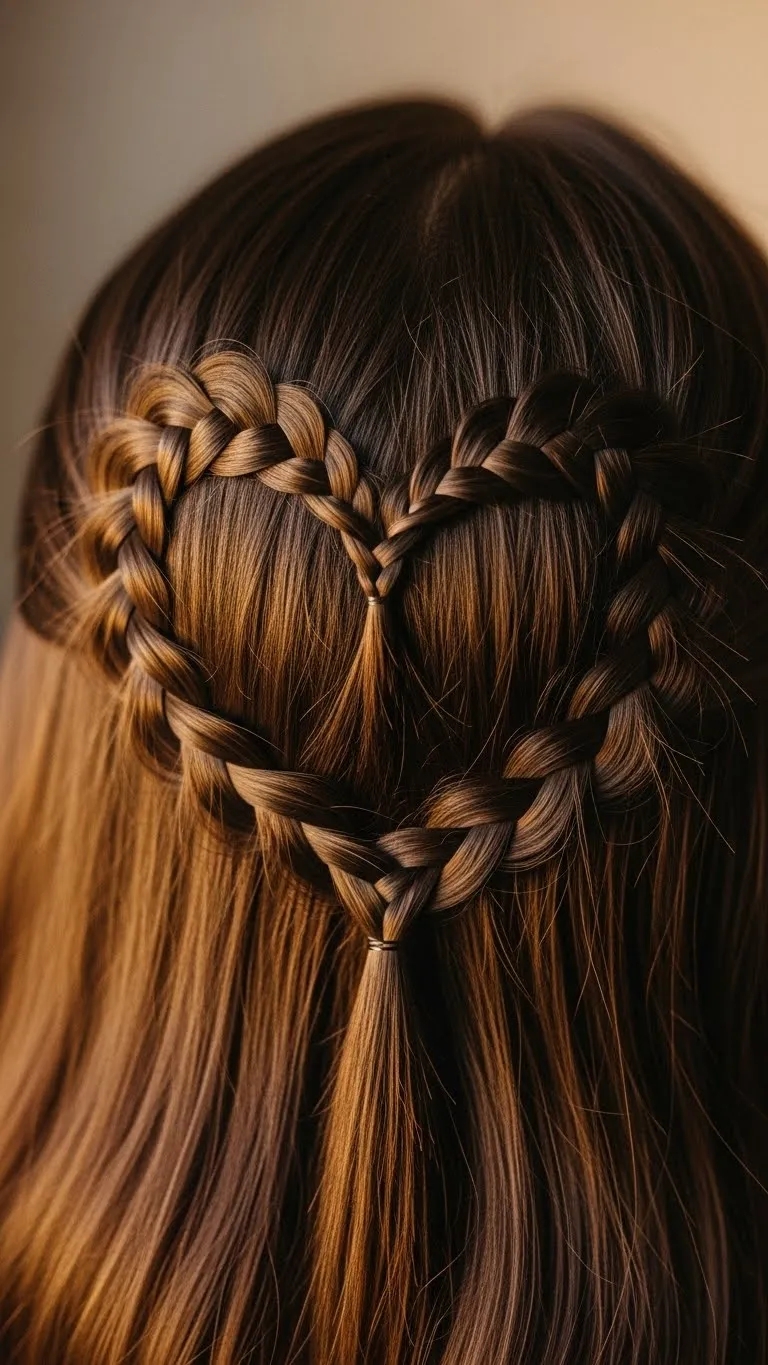 A heart-inspired braid is perfect for Valentine plans without looking childish. Create two small braids from each side of the head near the temples. Pull them toward the back and shape them into a soft heart using bobby pins. Keep the rest of the hair loose for balance. This style works best when the braids are not too tight, allowing the heart shape to look natural rather than stiff. You can curl the loose hair slightly or leave it natural. Clear elastics and hidden pins keep the look clean. This braid works for casual dates, school, or family gatherings. It also looks charming in photos from the back while staying subtle from the front. If your hair is thin, tease lightly before braiding for better shape.