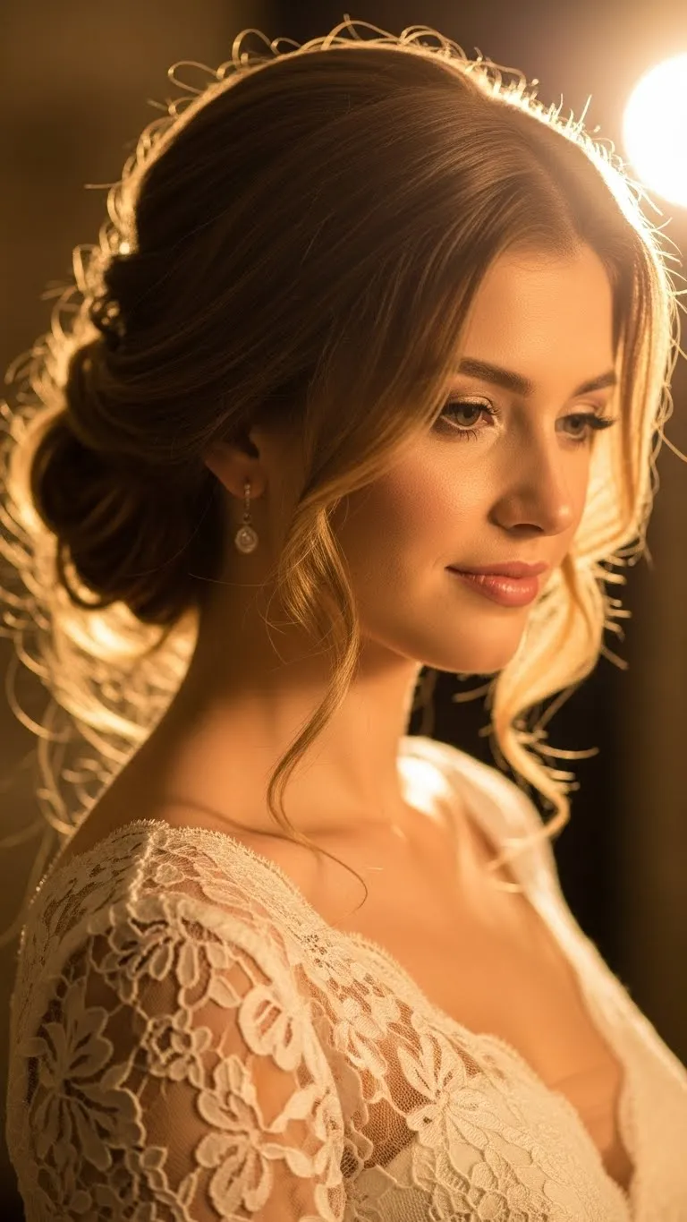 A loose low bun keeps long hair controlled while still looking romantic. Avoid tight wrapping and let the bun form naturally at the nape. Leave soft pieces around the face and curl them lightly. This style stays secure without pulling and feels light on the head. As the day passes, the bun softens slightly, adding charm instead of looking messy.