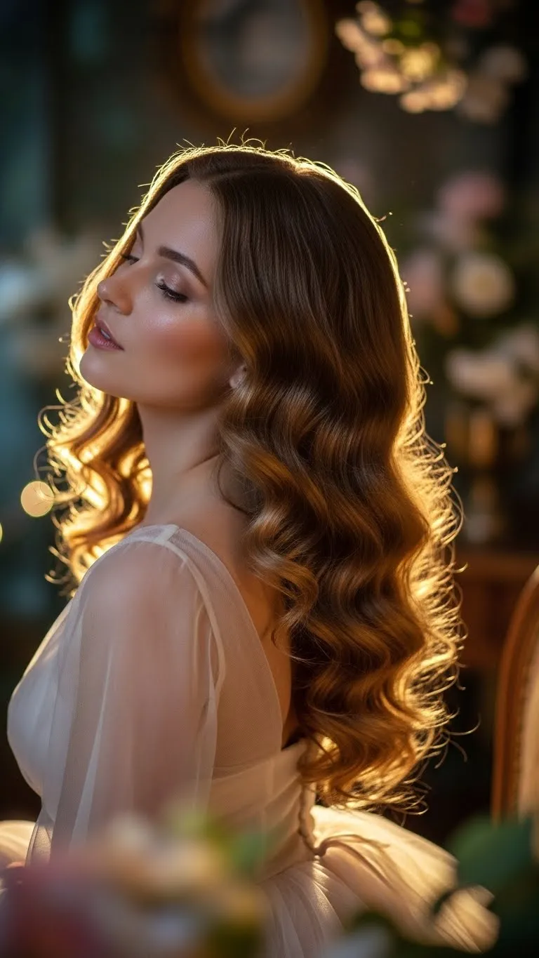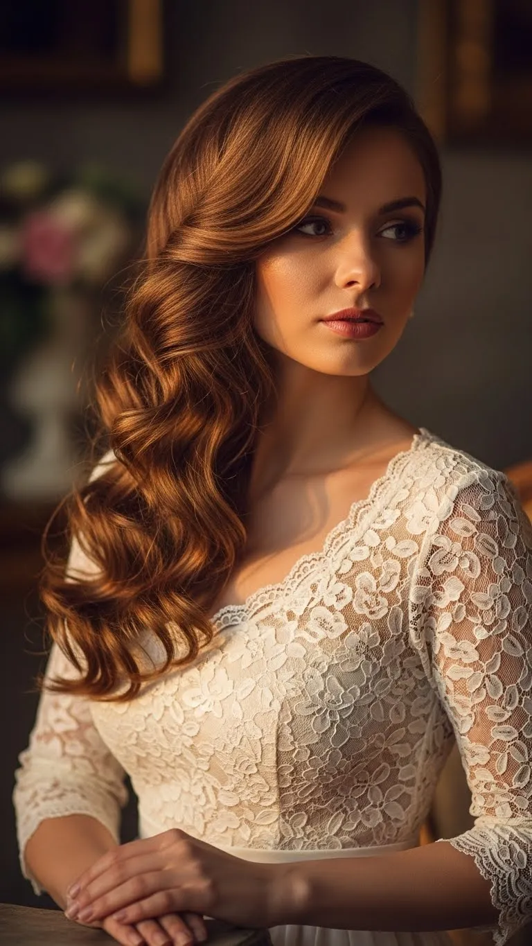 A middle part with soft waves creates balance and simplicity while still feeling romantic. Curl the hair loosely away from the face on both sides and avoid tight definition. This style works well with minimal product and holds naturally throughout the day. As the waves loosen, they maintain shape and movement, keeping the hair comfortable and flattering.