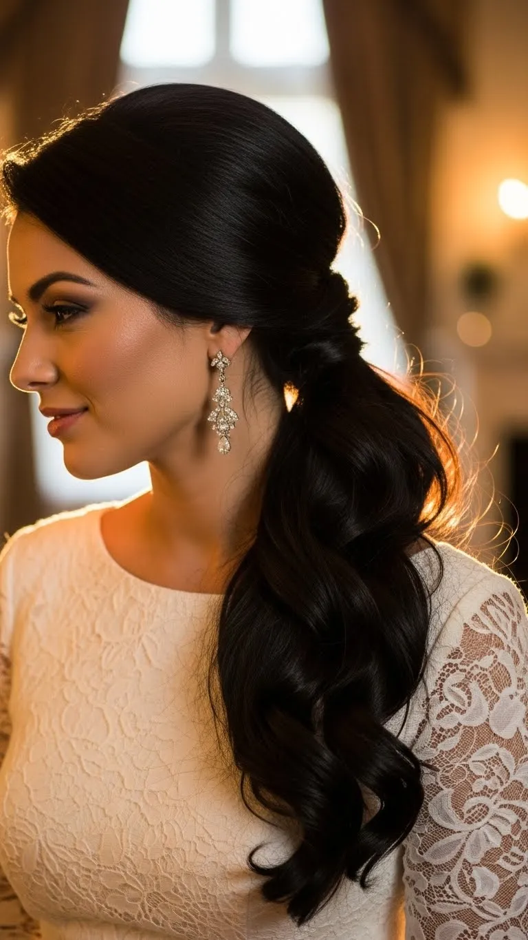 A low loose ponytail with curls is a romantic and practical choice for long hair. Secure the ponytail gently at the nape of the neck to avoid pulling. Curl the ponytail itself using a medium barrel to add movement. Lightly curl the front pieces to soften the face. This style stays comfortable for hours and looks better as the curls relax, making it ideal for long Valentine plans.