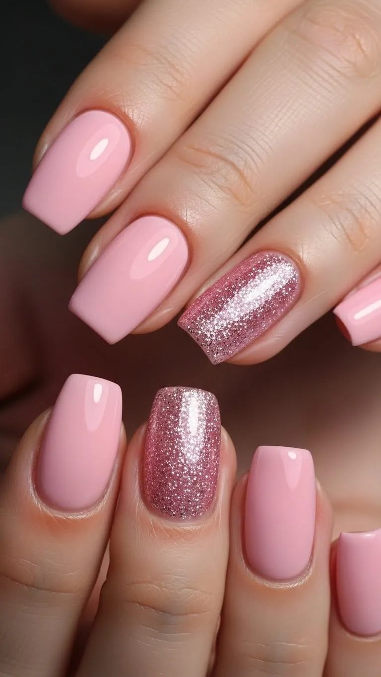 1. Pink Glitter Accent Valentine Nails