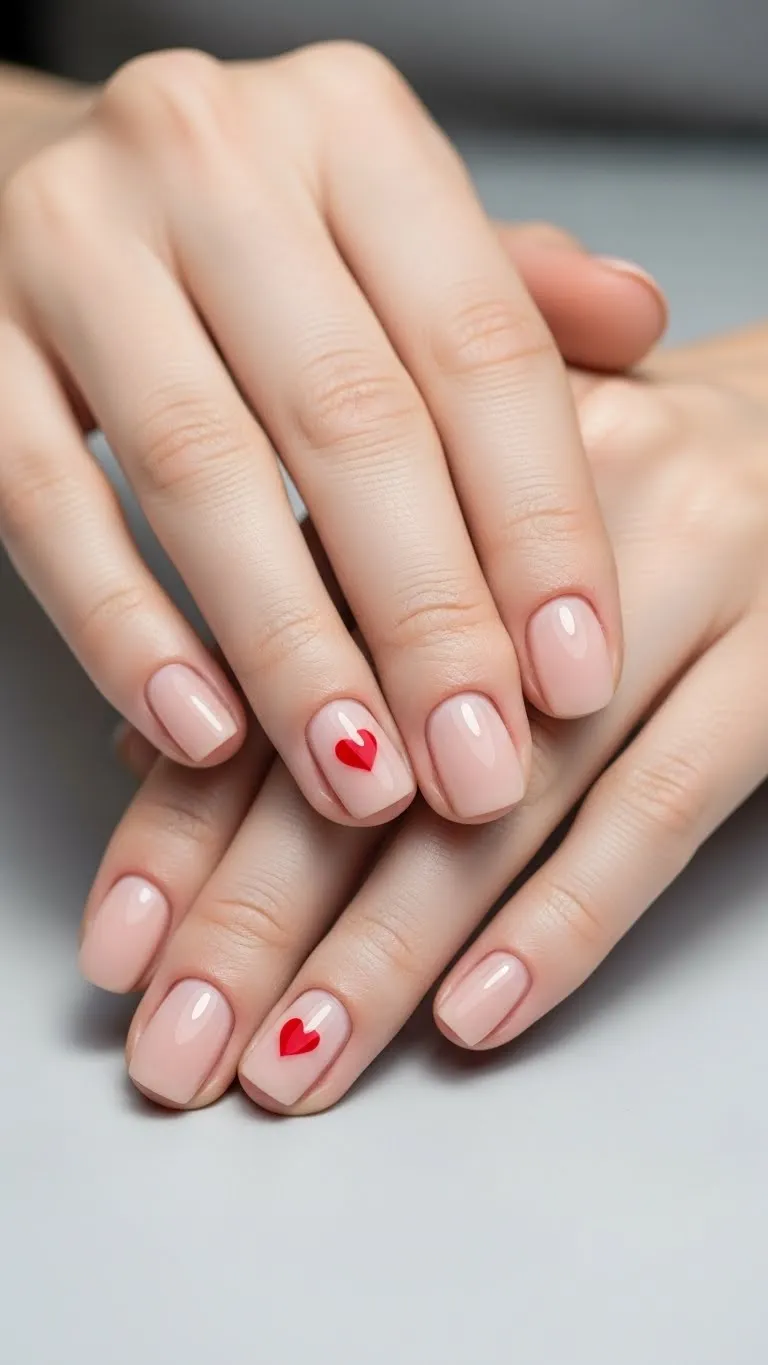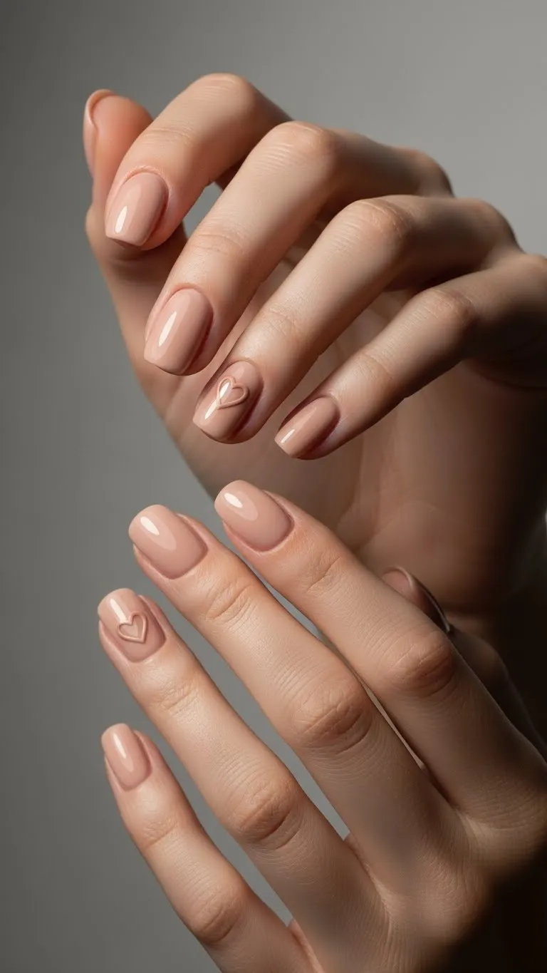 1. Nude Nails With Side Heart Accents