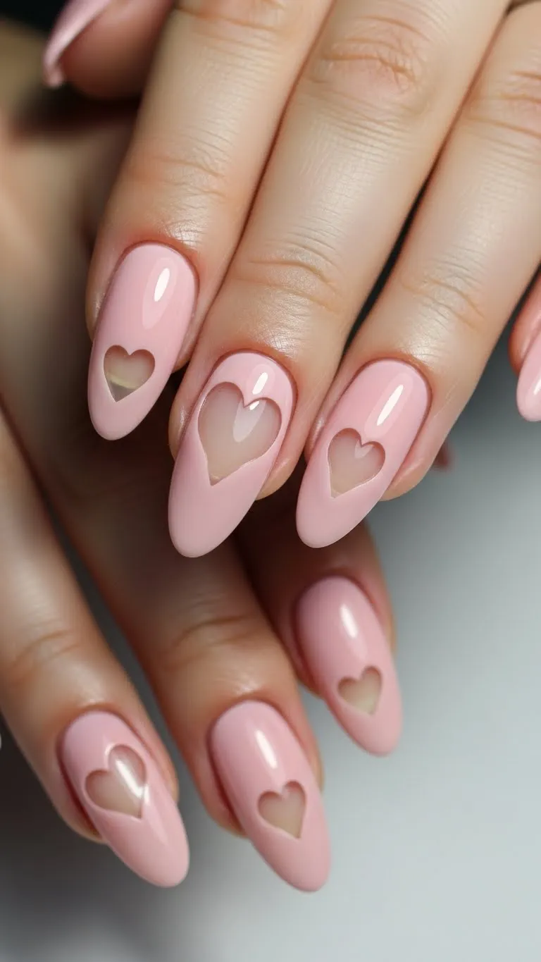 1. Almond Nails With Soft Pink Hearts